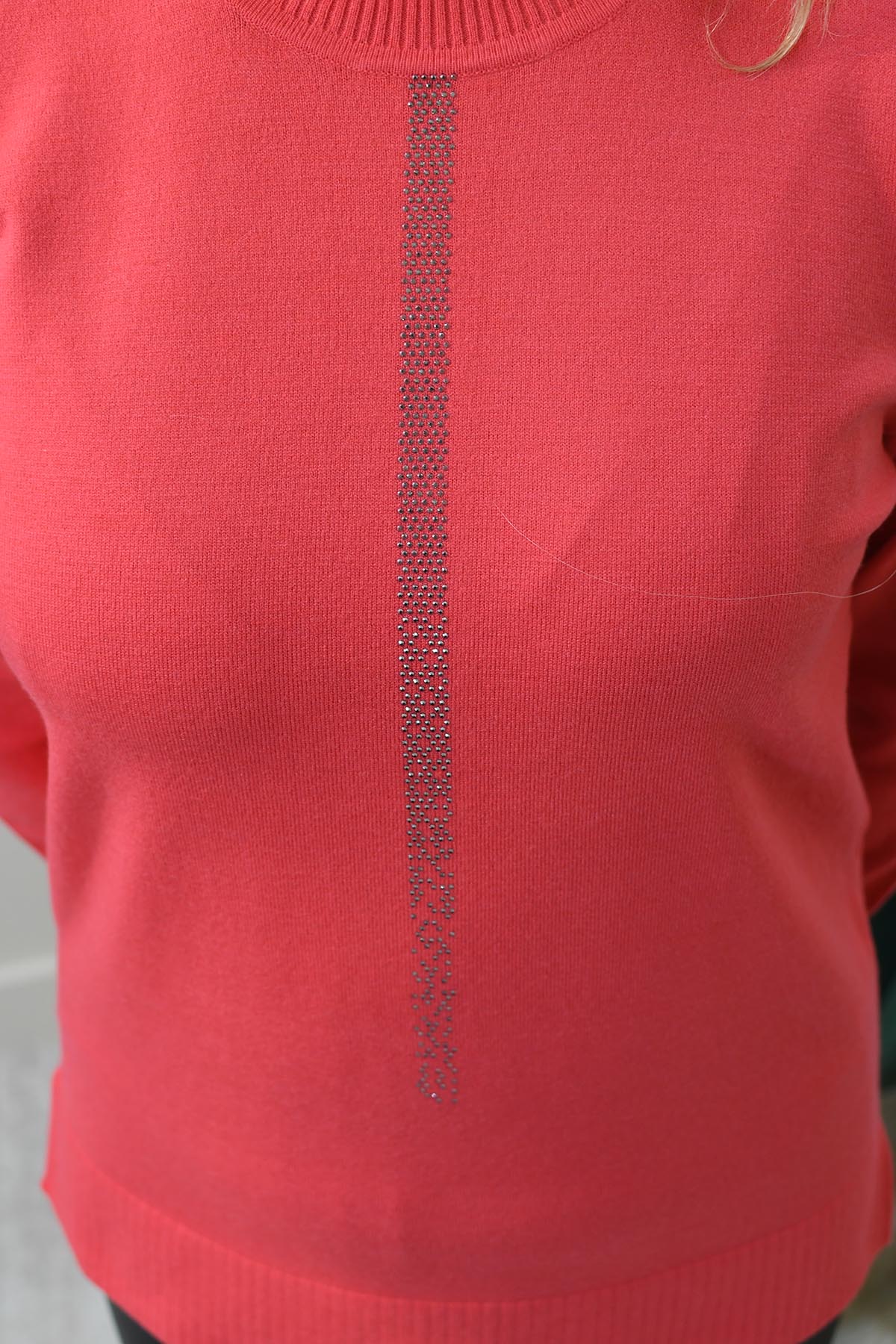 Pull col montant corail avec détails en strass Barbara Lebek-26110042