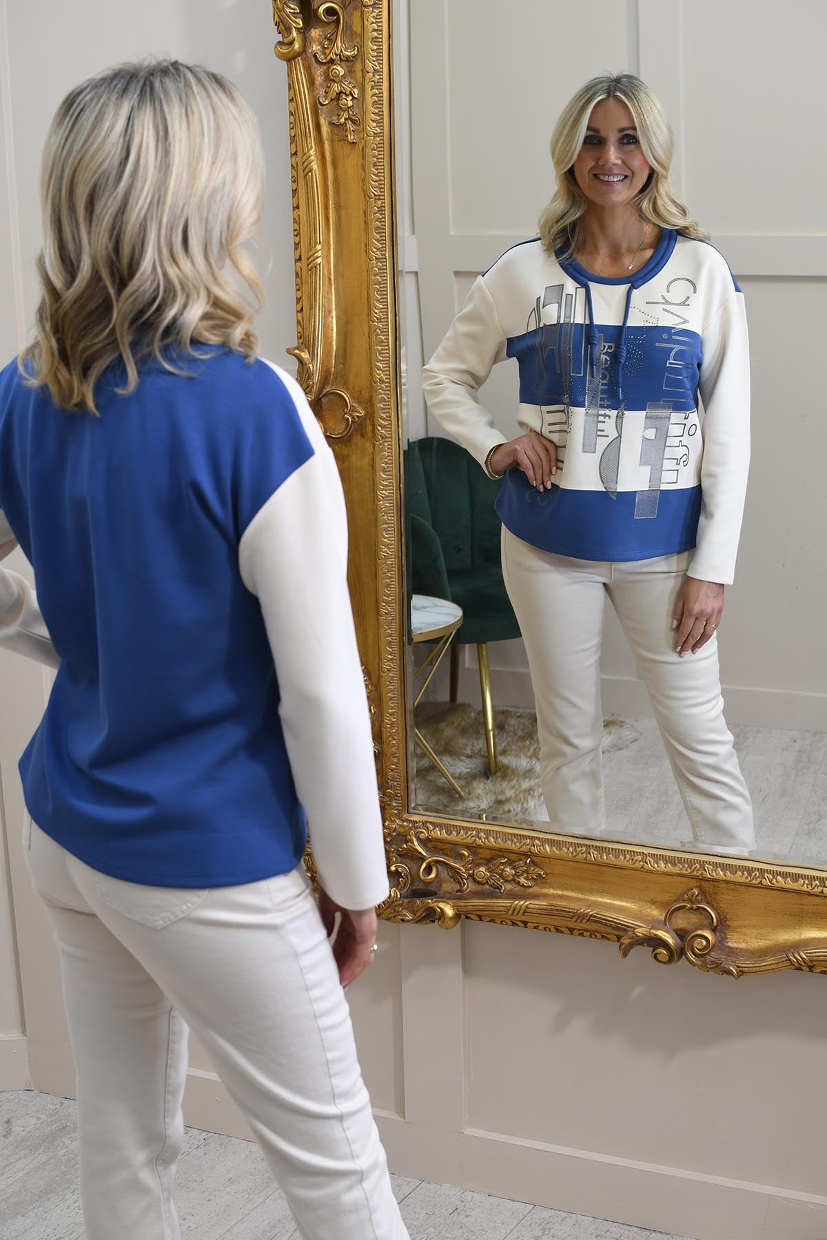 Stay effortlessly stylish with the Barbara Lebek Panna Cotta & Indigo Sweater With Stud Detail. Crafted from a premium blend of 50% polyester, 45% viscose, and 5% elastane, this sweater offers a soft, breathable feel with a touch of stretch for all-day comfort. The elegant panna cotta and indigo colour combination creates a timeless look, while the delicate stud detailing adds a subtle hint of sparkle. Designed with a classic round neckline and long sleeves, it’s perfect for layering or wearing solo. Pair with jeans or trousers for a sophisticated yet casual ensemble.
