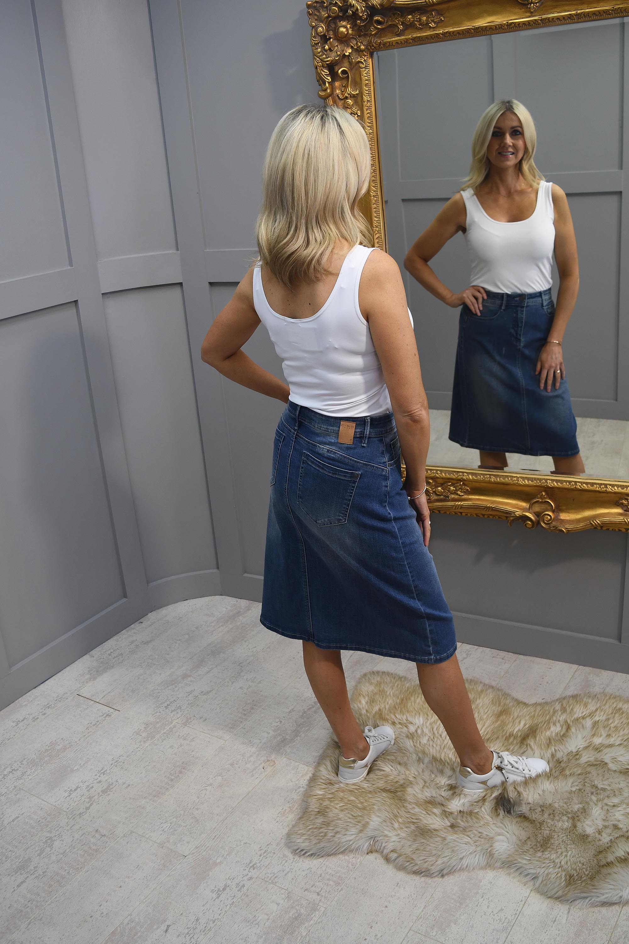 Fabriquée à partir d'un tissu denim de haute qualité, cette jupe assure à la fois durabilité et confort, vous permettant de bouger facilement tout en reflétant confiance et style. Son design polyvalent en fait un incontournable de votre garde-robe, offrant des possibilités infinies pour créer des tenues chics et élégantes.