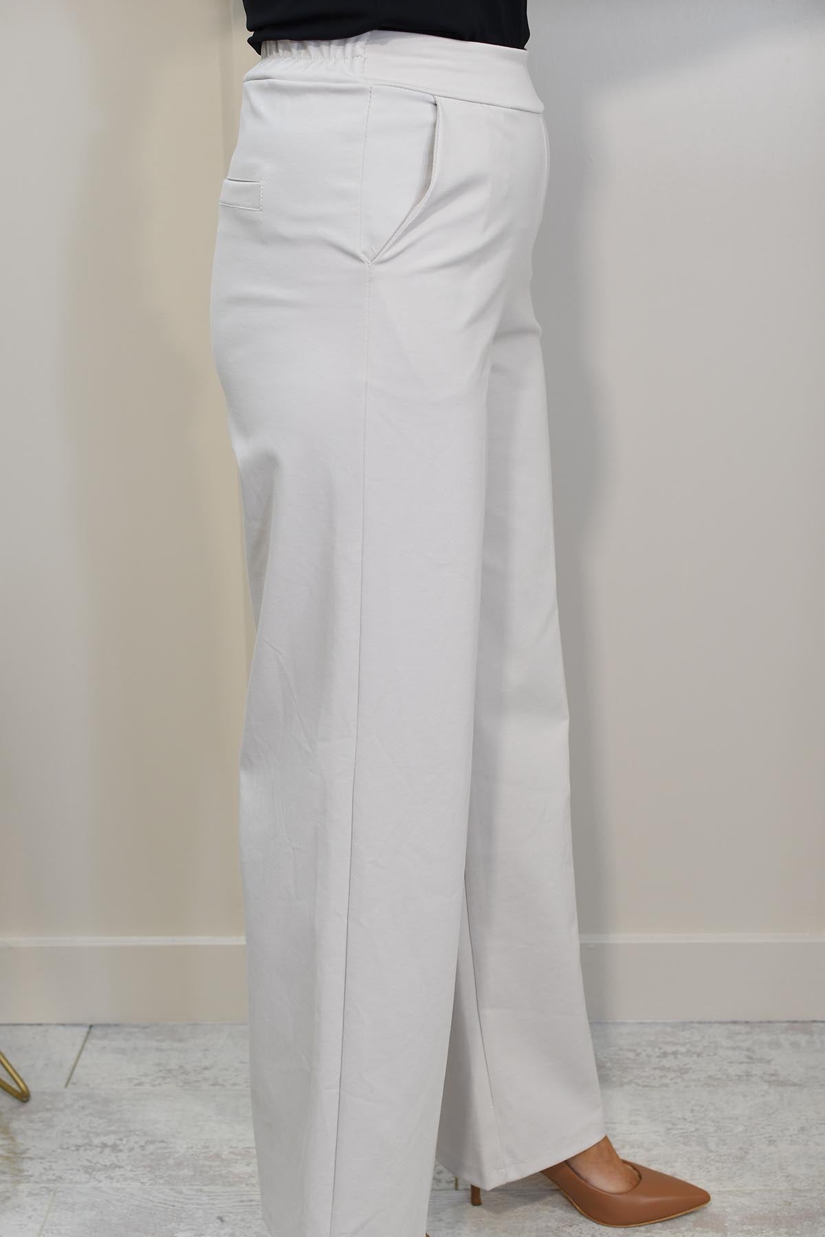 Decollage Sand Wide Leg Trousers With Elasticated Waist-2435