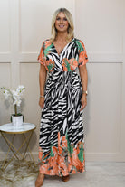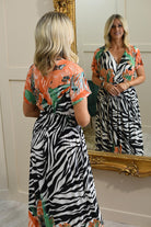 Elena Z Peach Tropical & Zebra Print Magic Fit Maxi Dress -2237-18