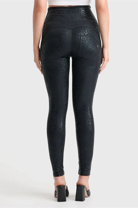 Pantalon noir Freddy WR.UP en coton brillant à imprimé animal avec taille ultra haute-WRUP2HHF302