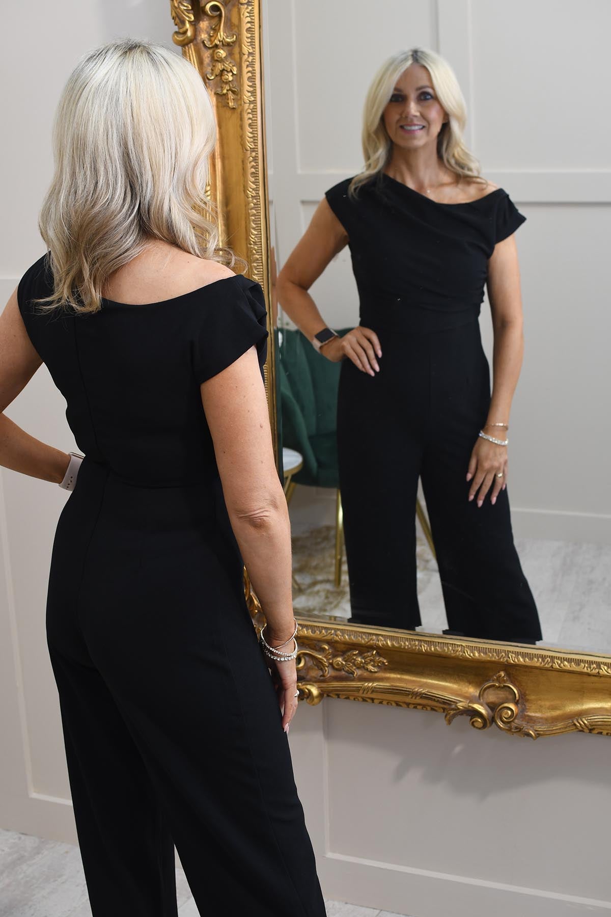 La combinaison asymétrique noire Girl In Mind - Donna est une pièce chic et sophistiquée, parfaite pour faire bonne impression. Dotée d'un décolleté asymétrique unique, cette combinaison ajoute une touche moderne et élégante à une silhouette classique. Le design noir élégant offre une coupe flatteuse et épurée, tandis que la taille ajustée met en valeur votre silhouette. Idéale pour les événements formels comme pour les soirées élégantes, cette combinaison allie élégance et touche contemporaine. Confortable mais glamour sans effort, c'est un incontournable pour celles qui cherchent à rehausser leur garde-robe avec une pièce frappante et avant-gardiste.