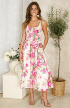 Hope & Ivy Floral Square Neck Sleeveless Corset Midi Dress - Alina