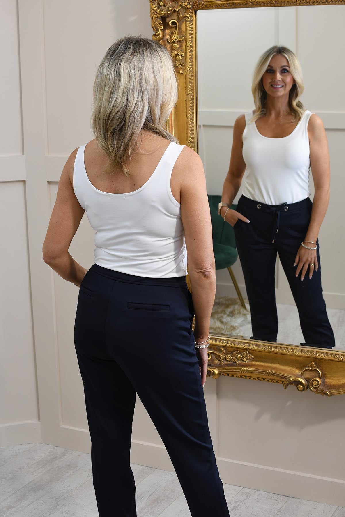 The I'CONA Navy Trousers With Drawstring & Pockets are the perfect blend of comfort and style. Made from a soft, breathable fabric, these trousers offer a relaxed fit while maintaining a polished look. The adjustable drawstring waist ensures a customisable fit, while the functional side pockets add a practical touch. The classic navy colour makes them versatile and easy to pair with your favourite tops, blouses, or jackets. Whether dressed up with heels or kept casual with sneakers, these trousers are an essential addition to your everyday wardrobe.