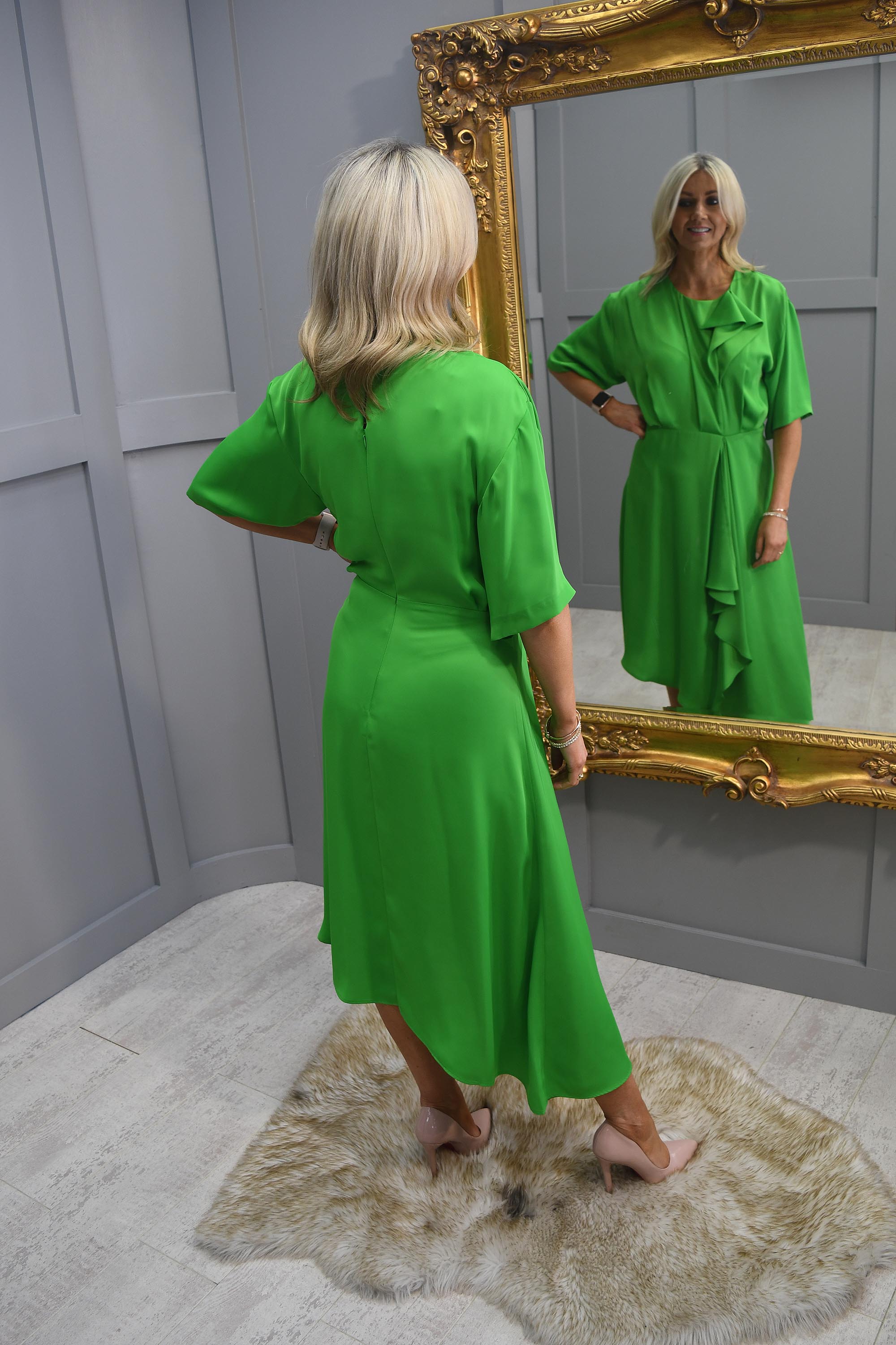 Robe vert vif Kate Cooper avec ourlet ange et détails volantés - KCS24108