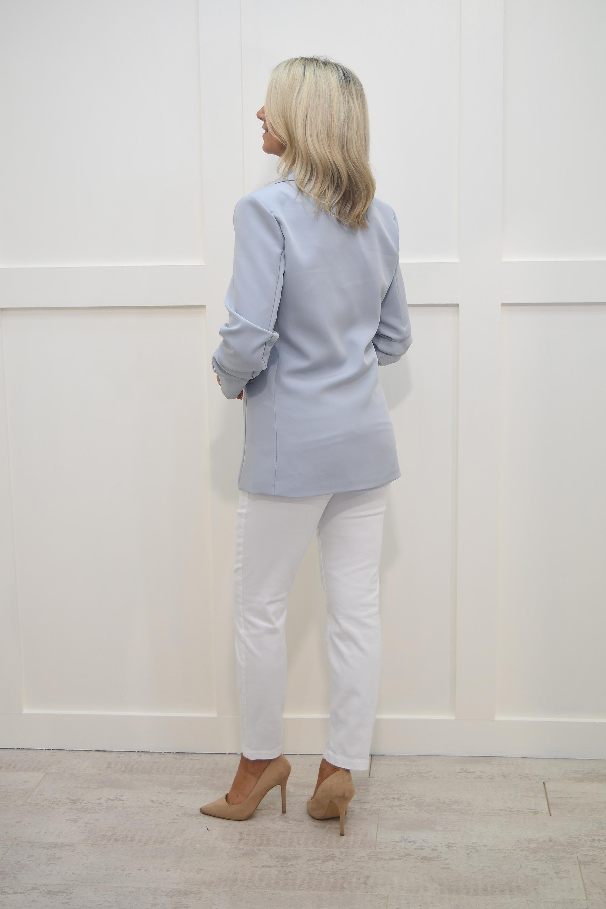 Rehaussez votre garde-robe avec le blazer gris à manches froncées Kyla. Conçu avec des manches froncées, il offre une version unique de la silhouette du blazer classique, offrant un look moderne et sophistiqué. La coupe ajustée met en valeur votre silhouette, tandis que le tissu de haute qualité assure confort et durabilité. Parfait pour les environnements professionnels et décontractés, le blazer est un ajout indispensable à votre collection de mode. Associez-le à un pantalon ajusté pour un ensemble de bureau raffiné ou à un jean pour un look décontracté et élégant.