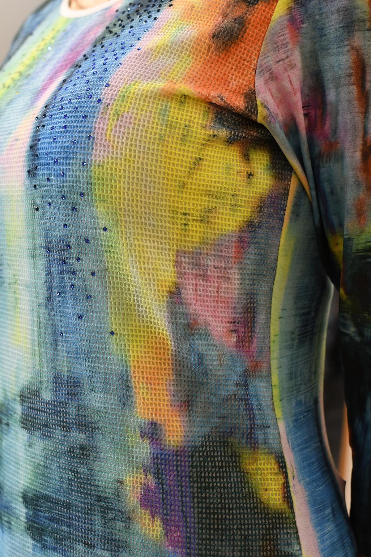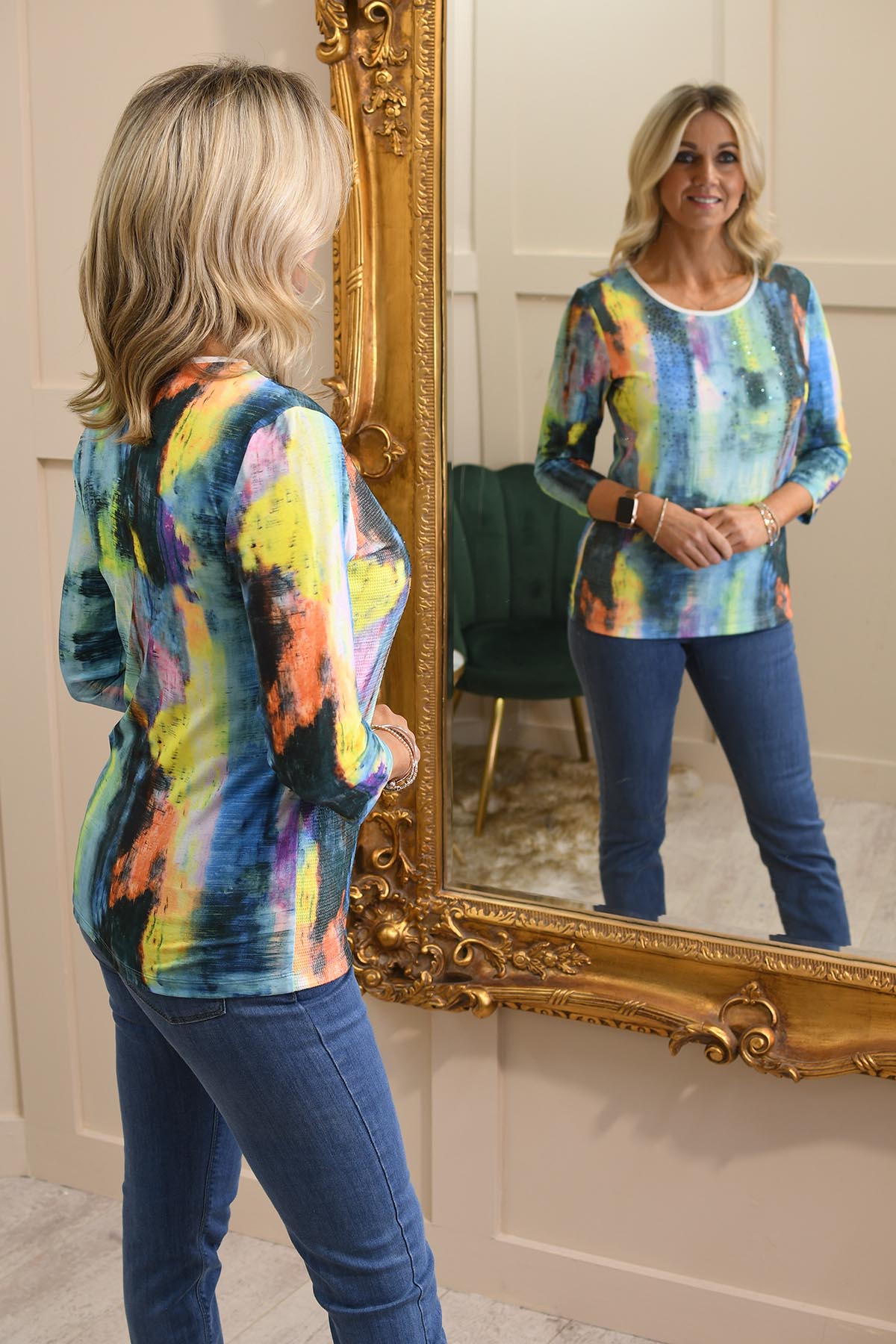 Libra Blue, Yellow & Orange Long Sleeve Top With Diamante Detail -LT1902