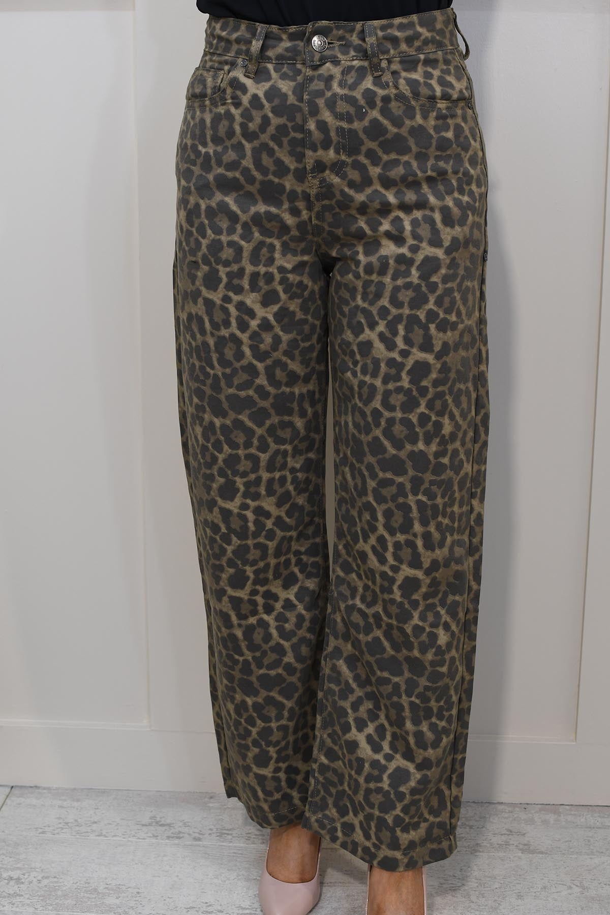 Ce jean tendance présente un imprimé léopard saisissant, parfait pour ajouter une touche de glamour à vos tenues de tous les jours.