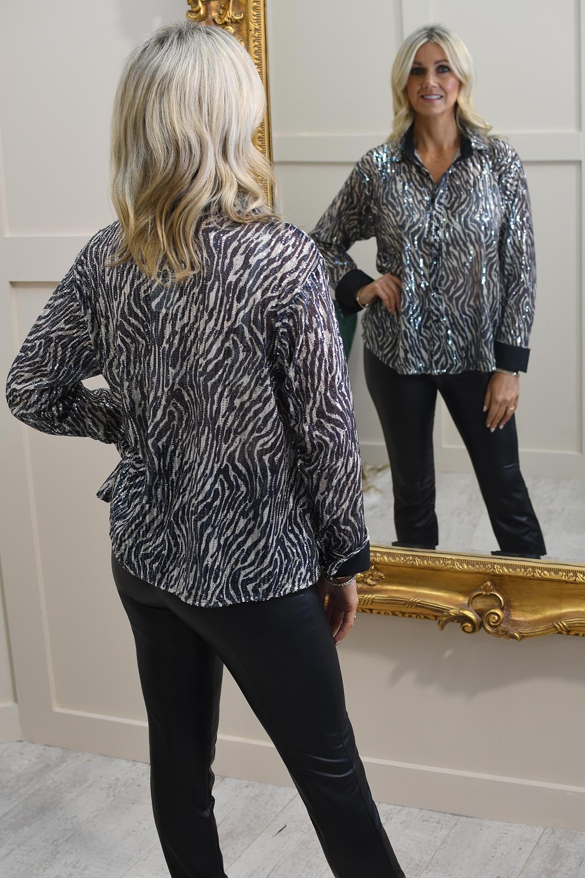 Chemise transparente à sequins imprimé zèbre Little Mistress-A24VW0404MU