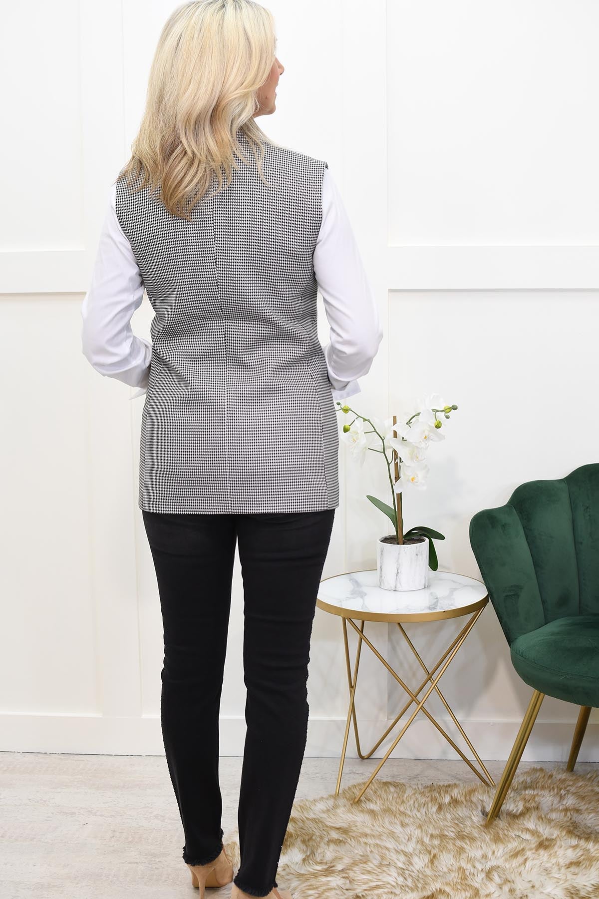 Rehaussez votre style avec le gilet pied-de-poule monochrome de Monari. Cette pièce sophistiquée présente un motif pied-de-poule intemporel dans une palette classique de noir et blanc, parfaite pour ajouter une touche d'élégance à n'importe quelle tenue.