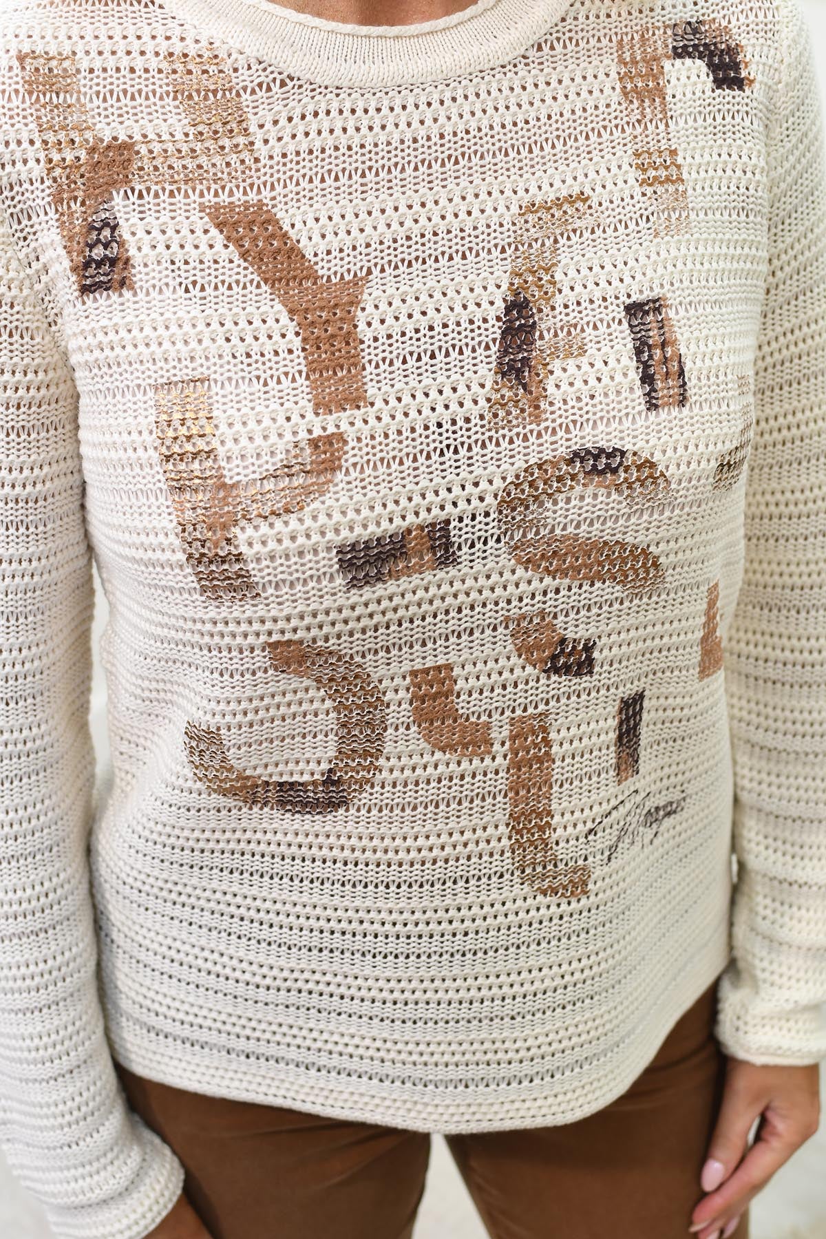 Pull en tricot crocheté Rabe crème avec détail de slogan - 53-114601 3604