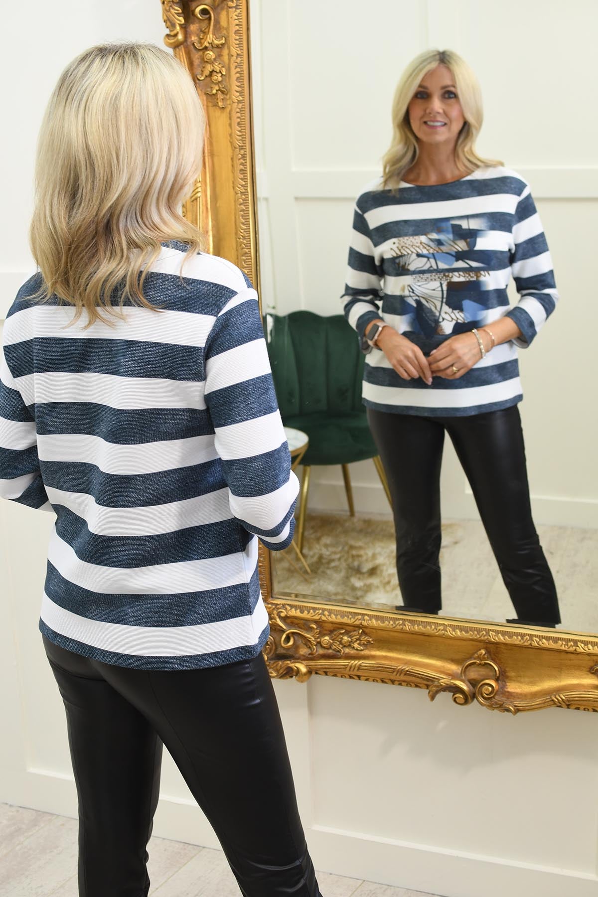 Haut en denim Rabe à rayures bleues et blanches avec motif - 53-114357 3374