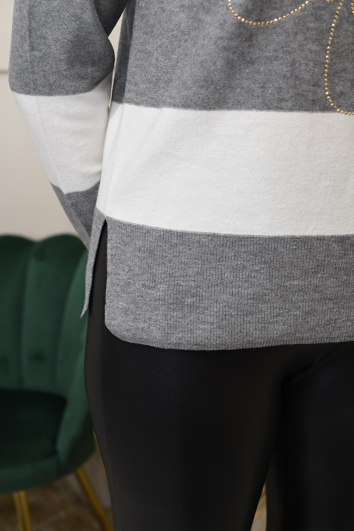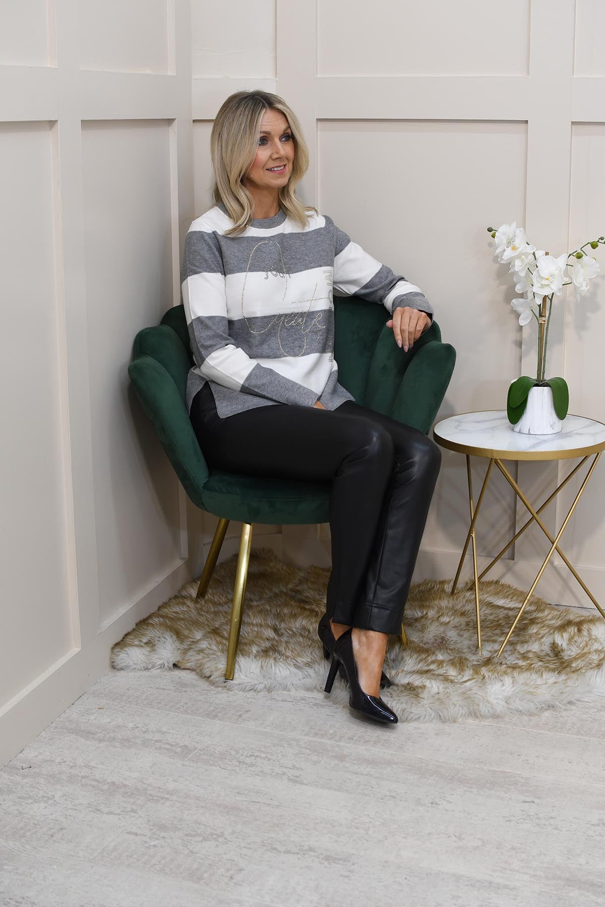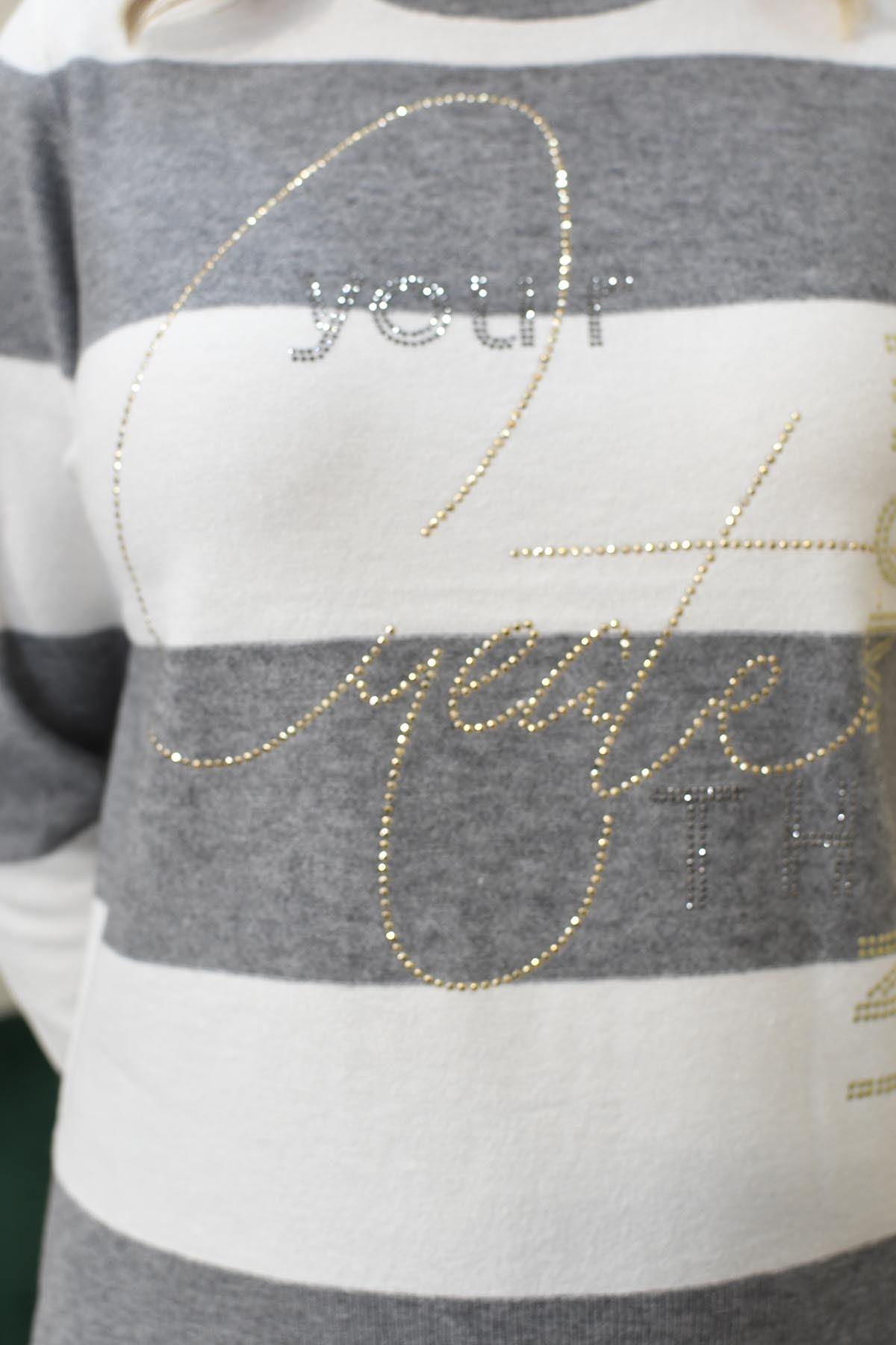 Rabe Stripe Jumper With Diamante Slogan- Grey & Cream 55-121626