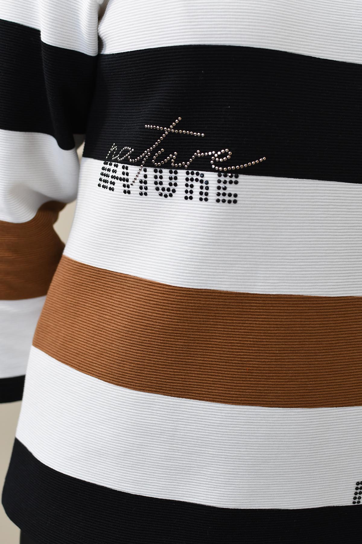 Confectionné dans un tissu doux de haute qualité, ce haut offre à la fois confort et coupe flatteuse, ce qui le rend idéal à porter toute la journée. La combinaison équilibrée de tons neutres crée un attrait intemporel, tandis que le motif à rayures ajoute une touche contemporaine à un incontournable classique.