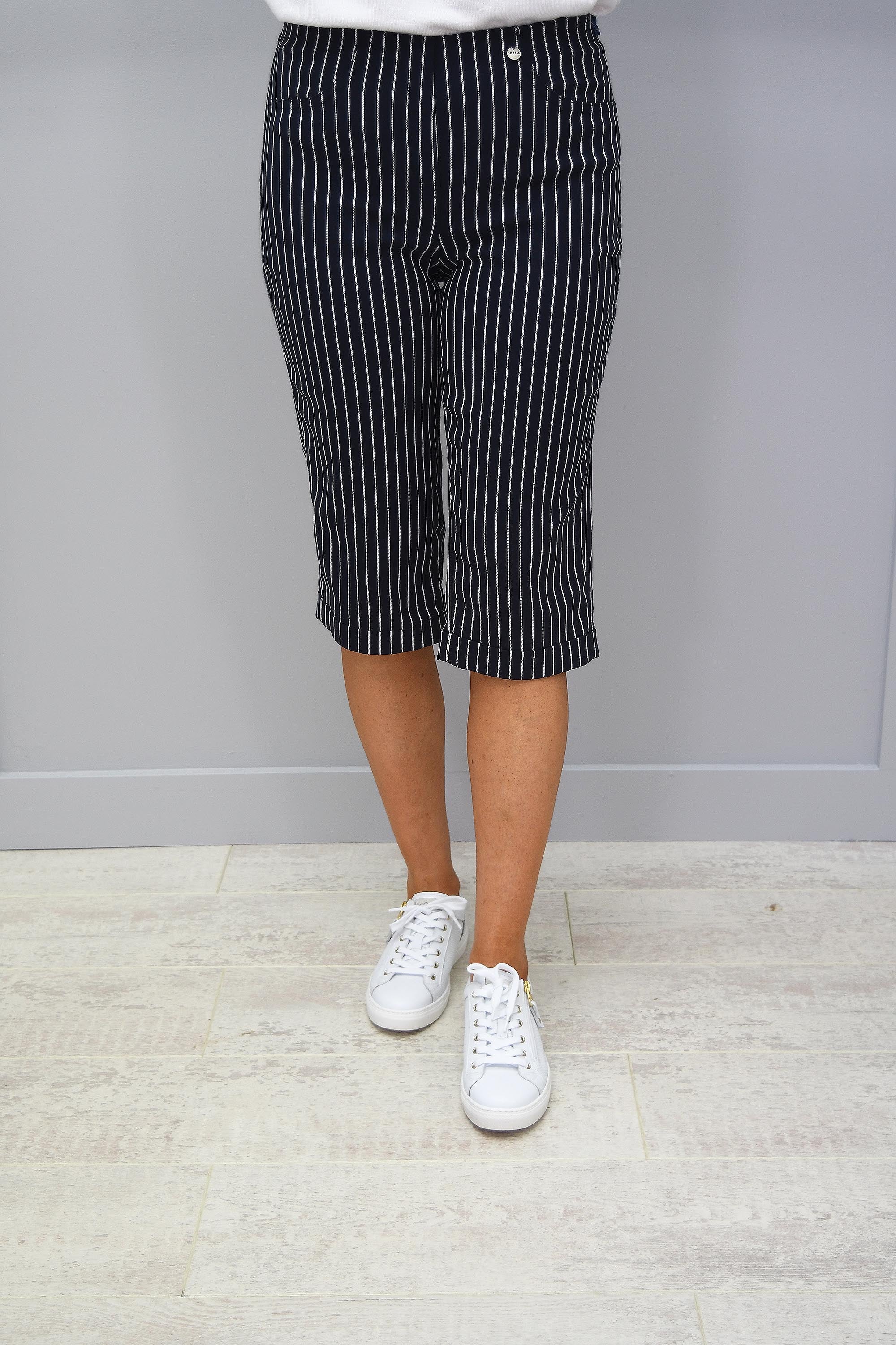 Robell Bella 05 Short à fines rayures bleu marine - 51625 545 69
