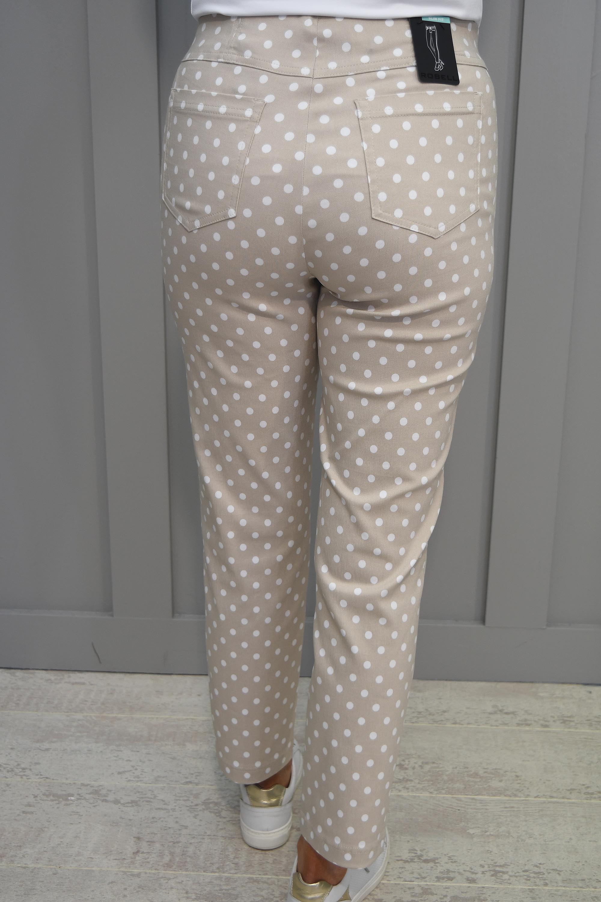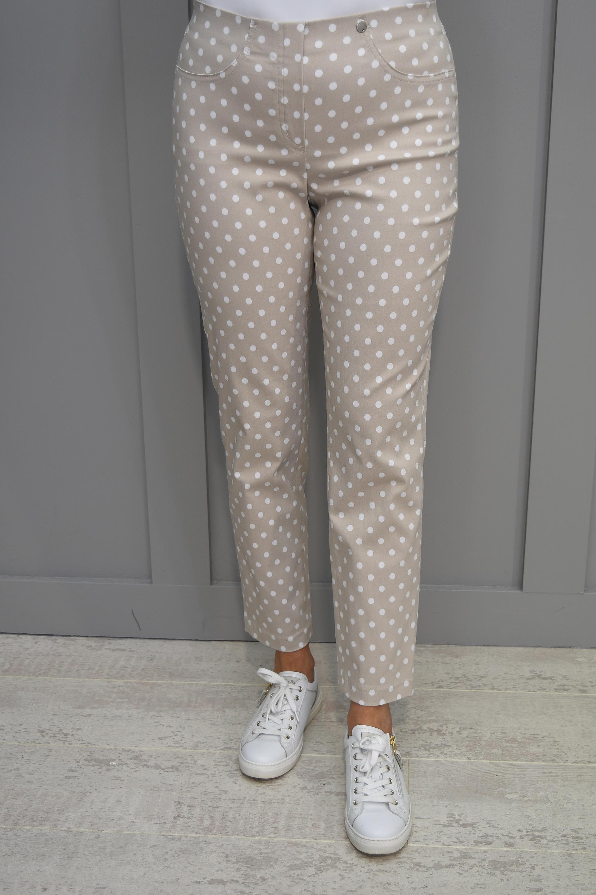 Le pantalon Robell Bella 09 Beige Spot est un pantalon élégant et confortable qui présente un design à pois beige.