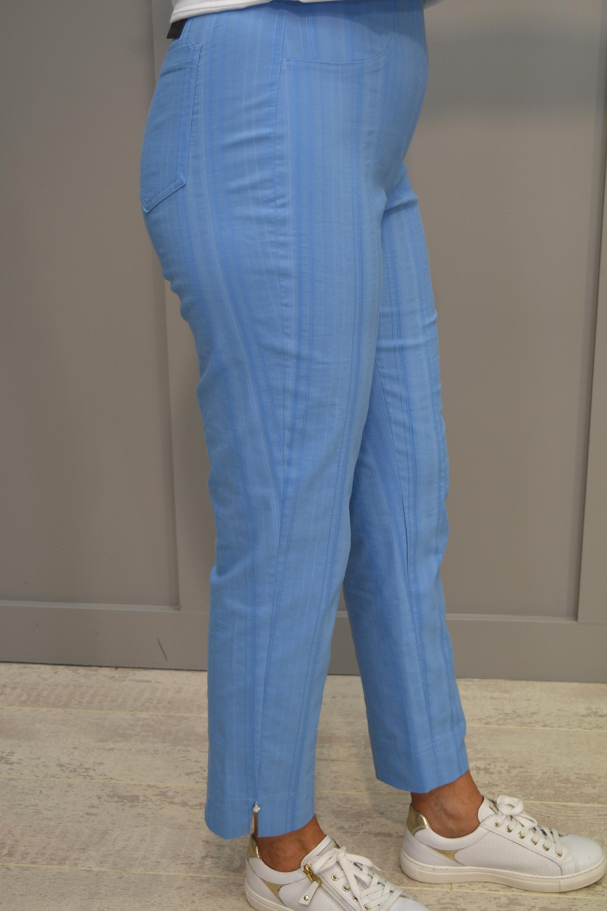 Pantalon en seersucker bleu poudré Robell Bella 09 - 52642 54554 60
