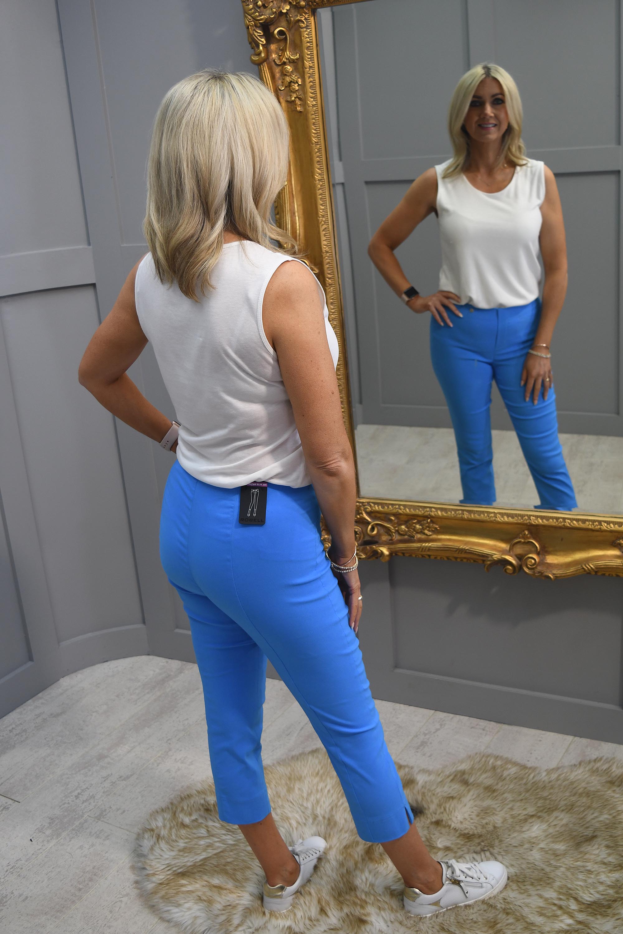 Fabriqué à partir d'un tissu de qualité supérieure, le pantalon présente une teinte bleu océan captivante qui respire l'élégance et le charme intemporels. Le matériau doux et extensible assure une coupe flatteuse et confortable, offrant une liberté de mouvement tout au long de votre journée.