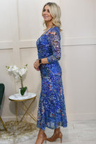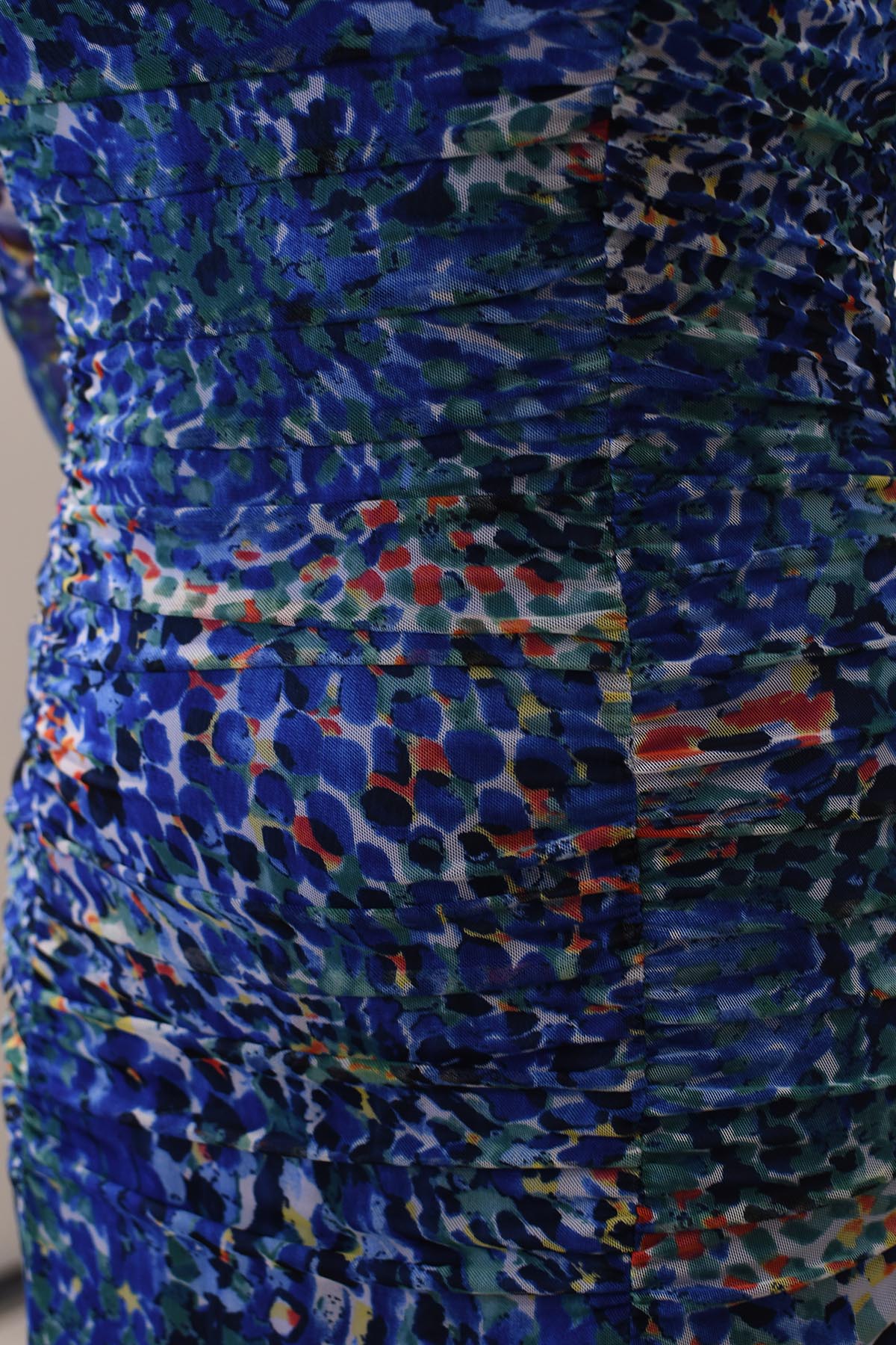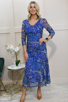 Tia Blue, Teal & Orange Ruched V Neck Dress-78915 7945 60