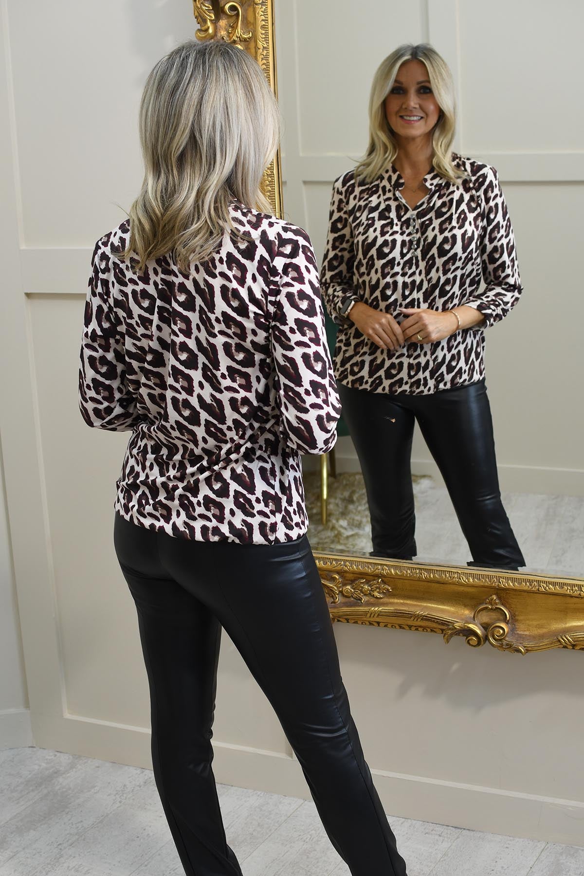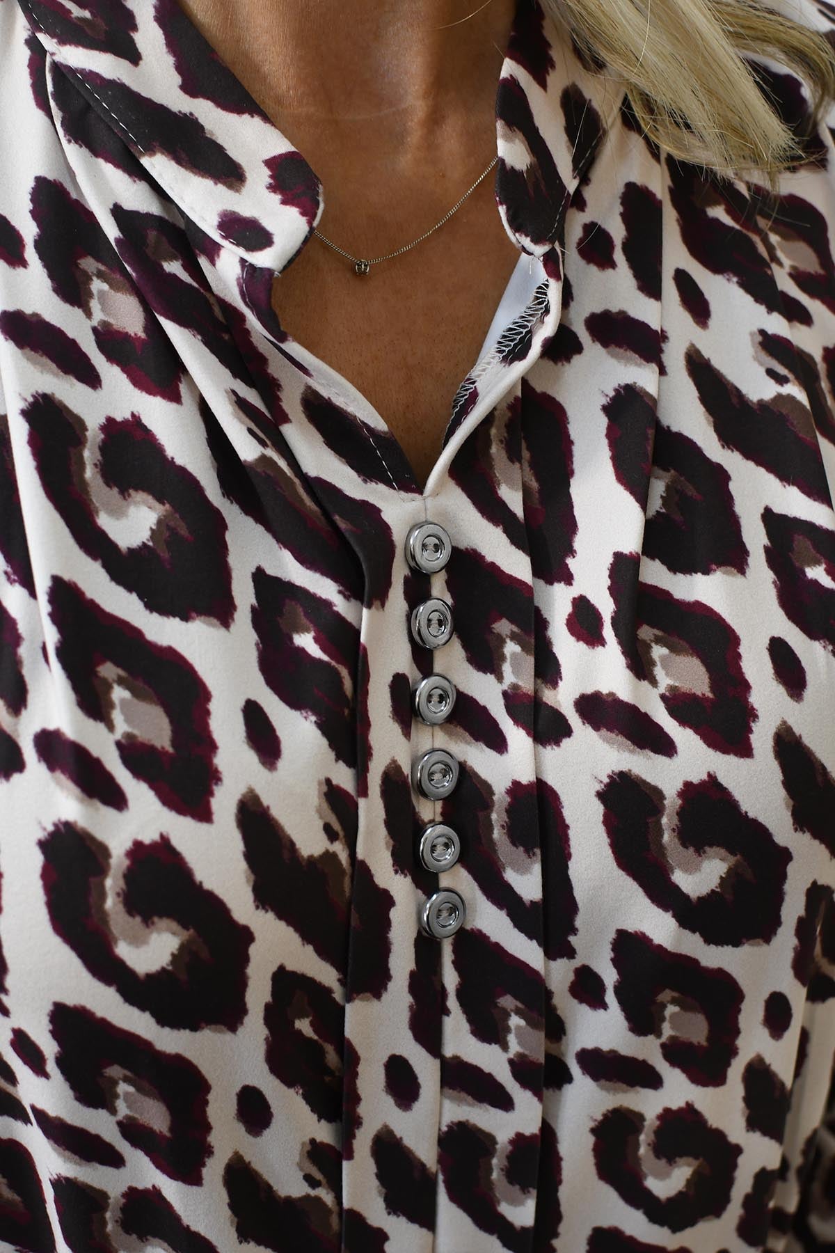 YEW Leopard Print 1/4 Button Top- Brown & Wine 3902 Claudia