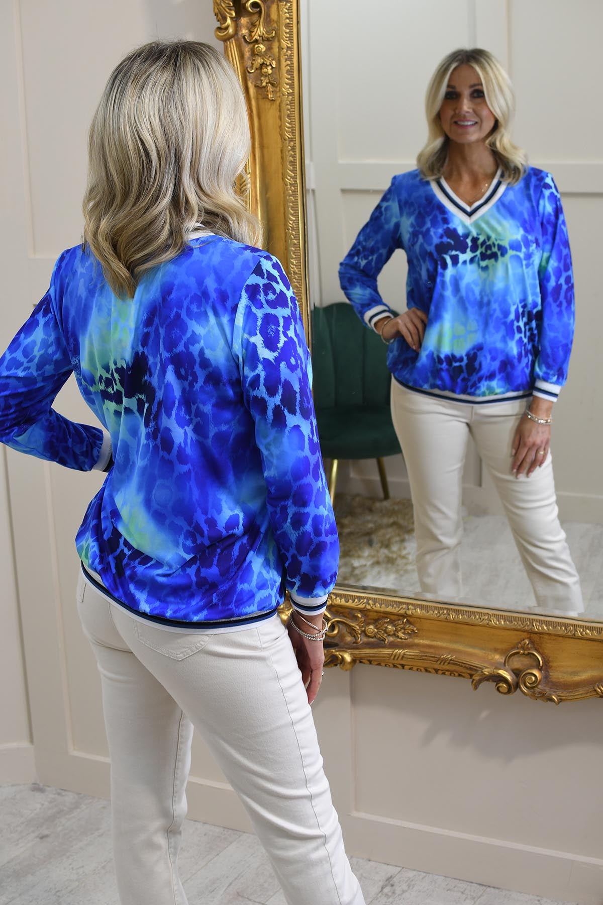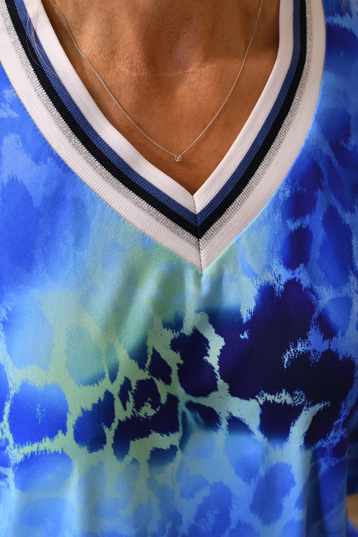 YEW Multi-Tonal Blue & Lime Animal Print Top with Sports Cuff-3825 Freda
