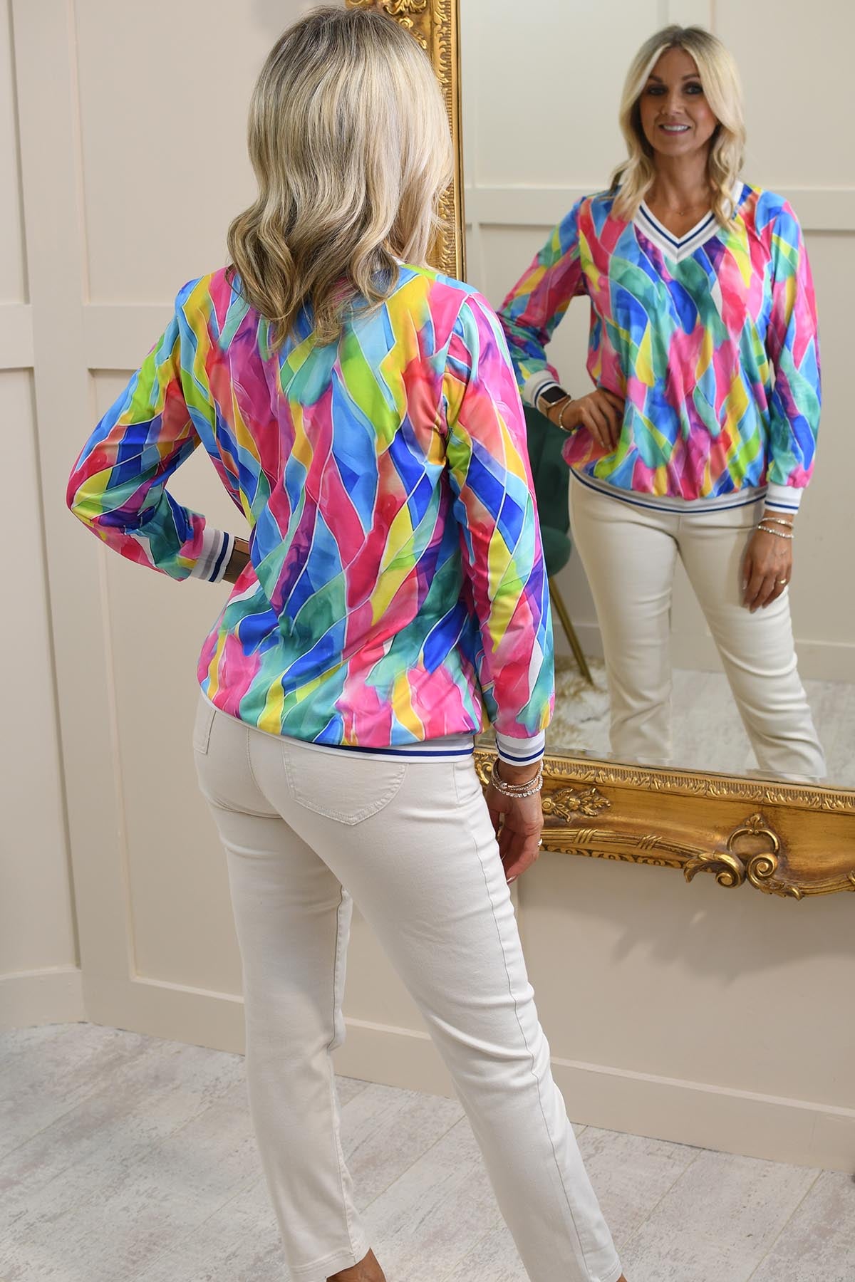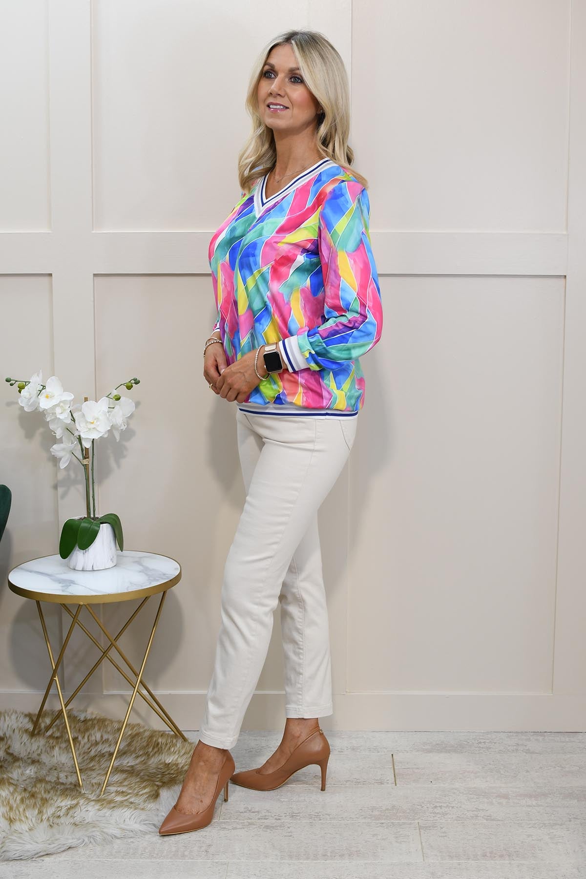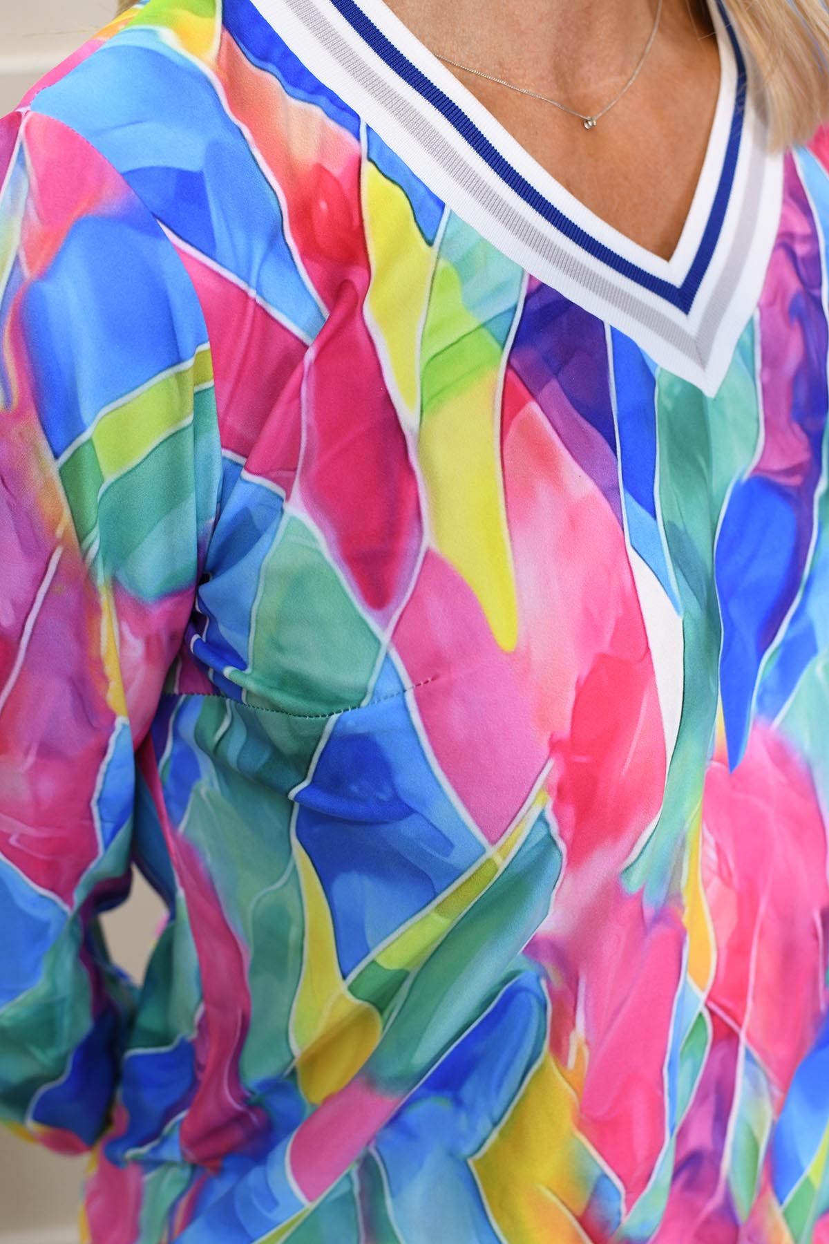 YEW Multicolour Diamond Print Top With Sports Cuff- 3825 Harley
