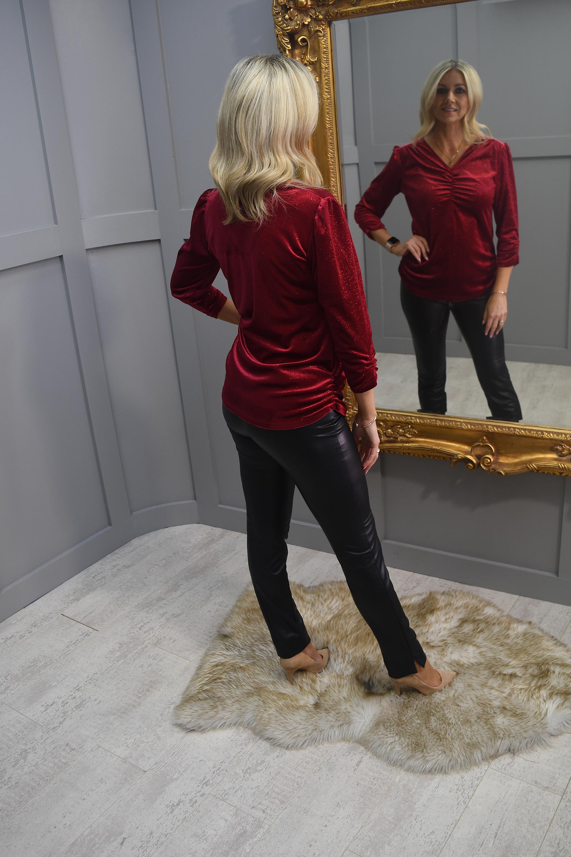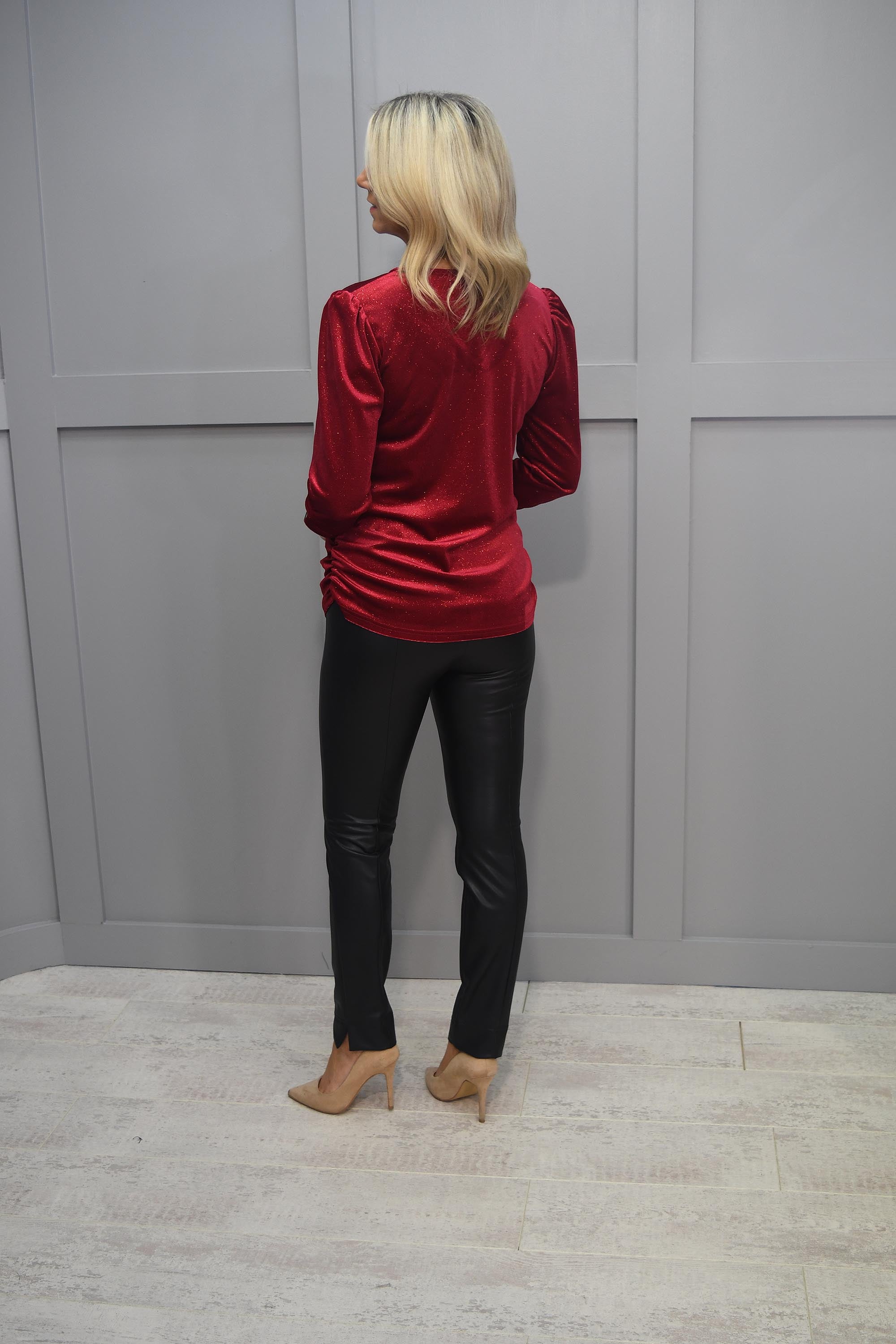 Haut rouge scintillant YEW avec encolure froncée - 3986 Lilly