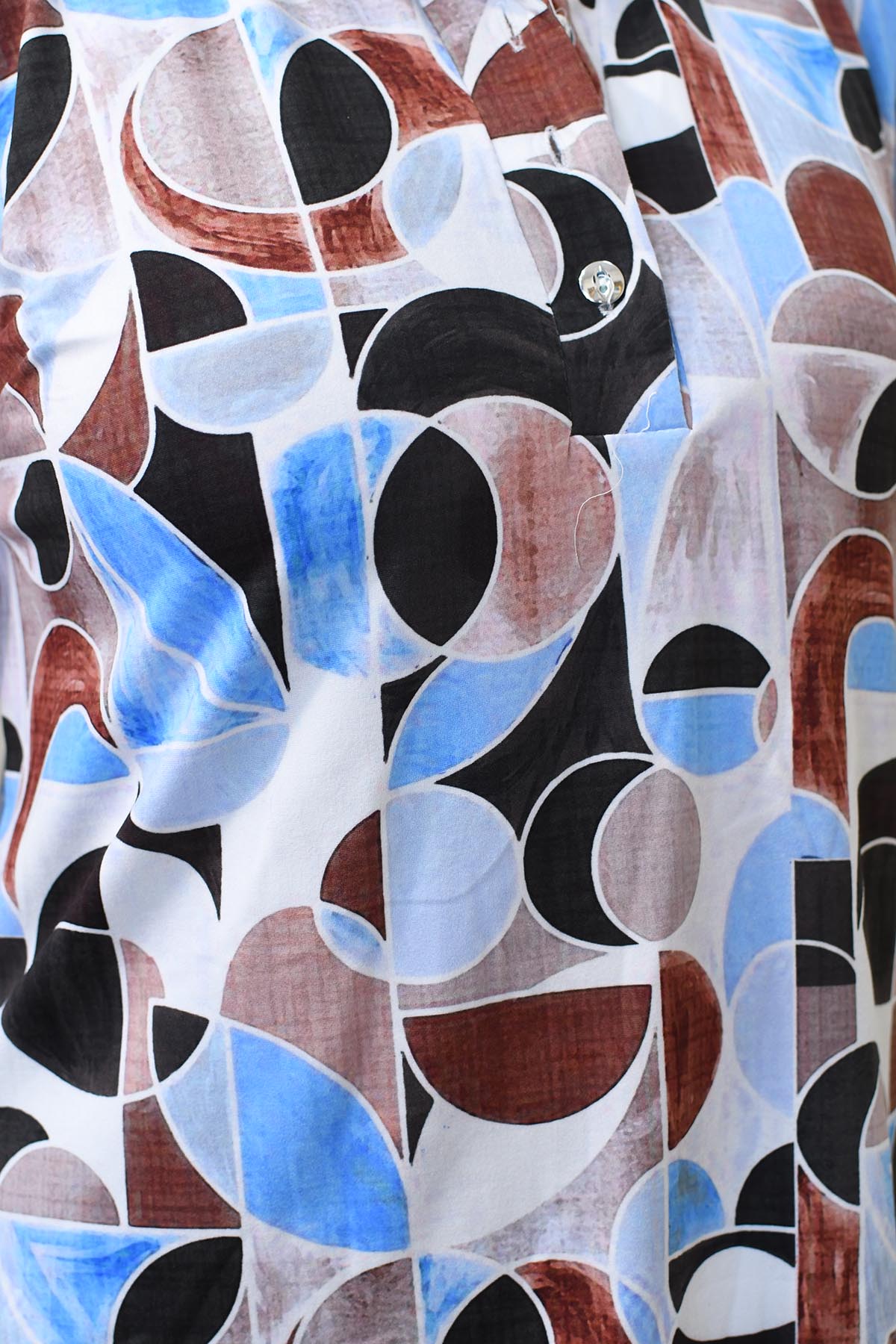 Confectionné dans un tissu doux de haute qualité, ce haut offre une coupe confortable et flatteuse qui drape joliment. L'imprimé géométrique ajoute une touche moderne, avec ses motifs abstraits et sa combinaison de couleurs harmonieuse qui capturent un attrait intemporel mais tendance.