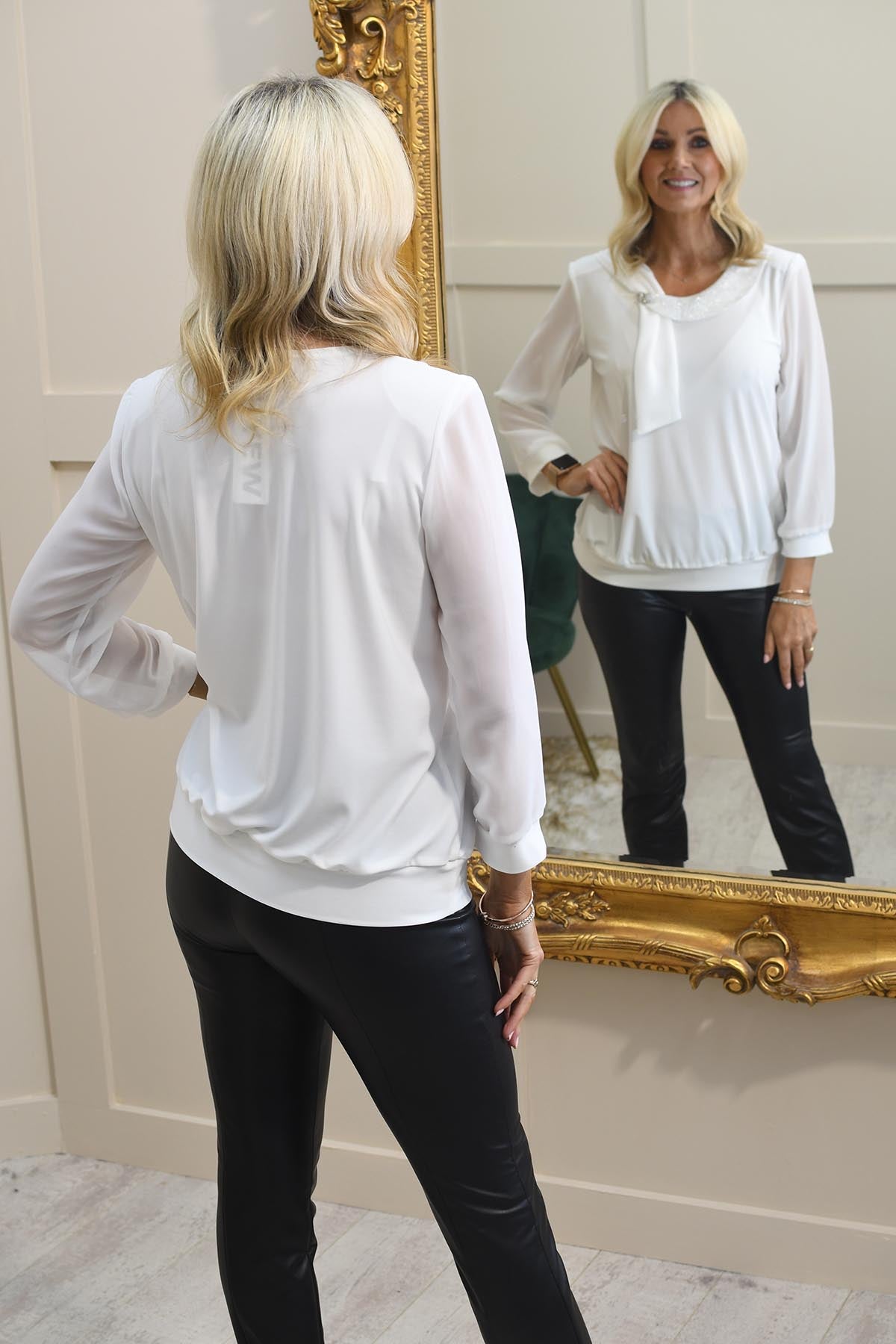 Haut blanc YEW avec décolleté scintillant et manches transparentes - 2807 Chanel