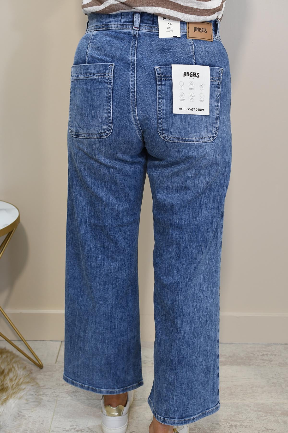 Discover effortless style with the Angels Light Wash Denim Culottes 26" Regular. Crafted from premium West Coast denim, these culottes offer the perfect fit with a flattering silhouette that enhances your shape. Made from sustainable fabrics, they ensure a long-lasting, eco-friendly addition to your wardrobe. The light wash finish exudes a laid-back, casual vibe while maintaining a polished look. Ideal for any season, these versatile culottes pair effortlessly with blouses, tees, or knitwear. Whether for weekend outings or relaxed office wear, enjoy comfort and durability with these timeless denim culottes.