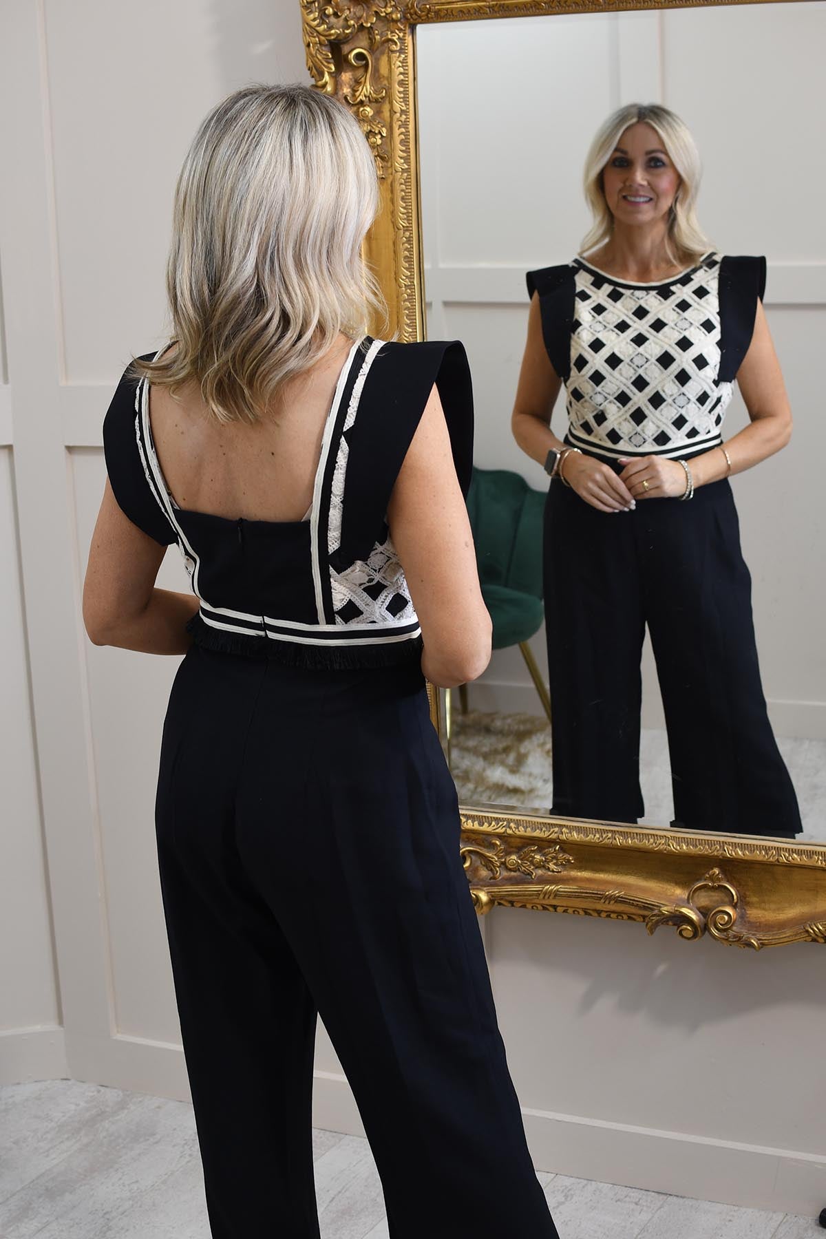 Arggido Black Jumpsuit With Cream Crochet Top- 48536