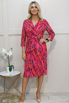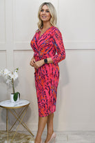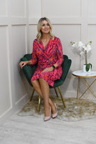 Turn heads with the Avalon Abstract Animal Print Dress in vivid pink and purple, a bold yet elegant choice for standout style. Made from 100% polyester, this lightweight fabric delivers lasting comfort, easy care, and a smooth drape that flatters every movement. The striking abstract animal print combines vibrant hues for a modern twist, while the buckle detail at the waist defines your silhouette with effortless sophistication. Designed to elevate both day and evening occasions, this dress blends playful colour with a figure-enhancing shape, making it the perfect choice for parties, weddings, or any event where chic confidence is key.
