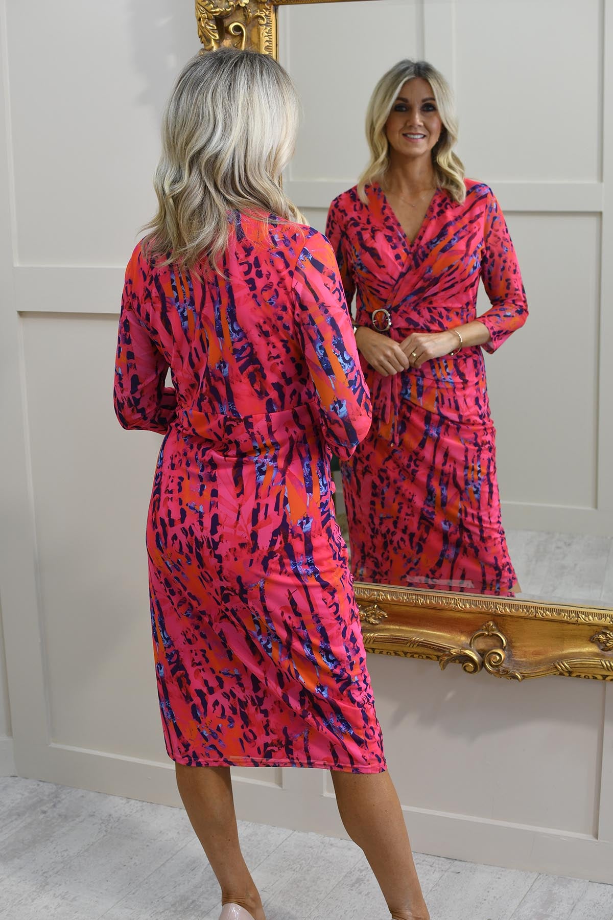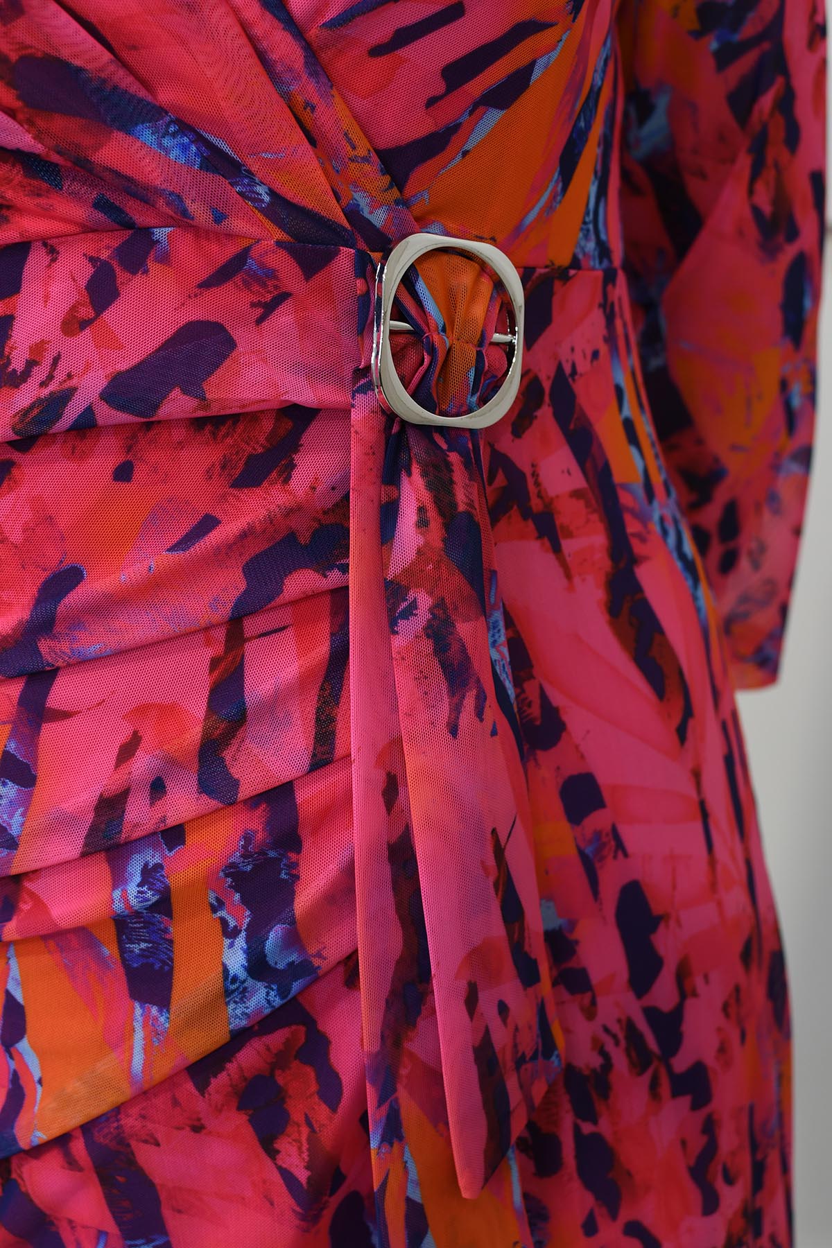 Avalon Abstract Animal Print Dress With Buckle Detail- Vivid Pink & Purple A124