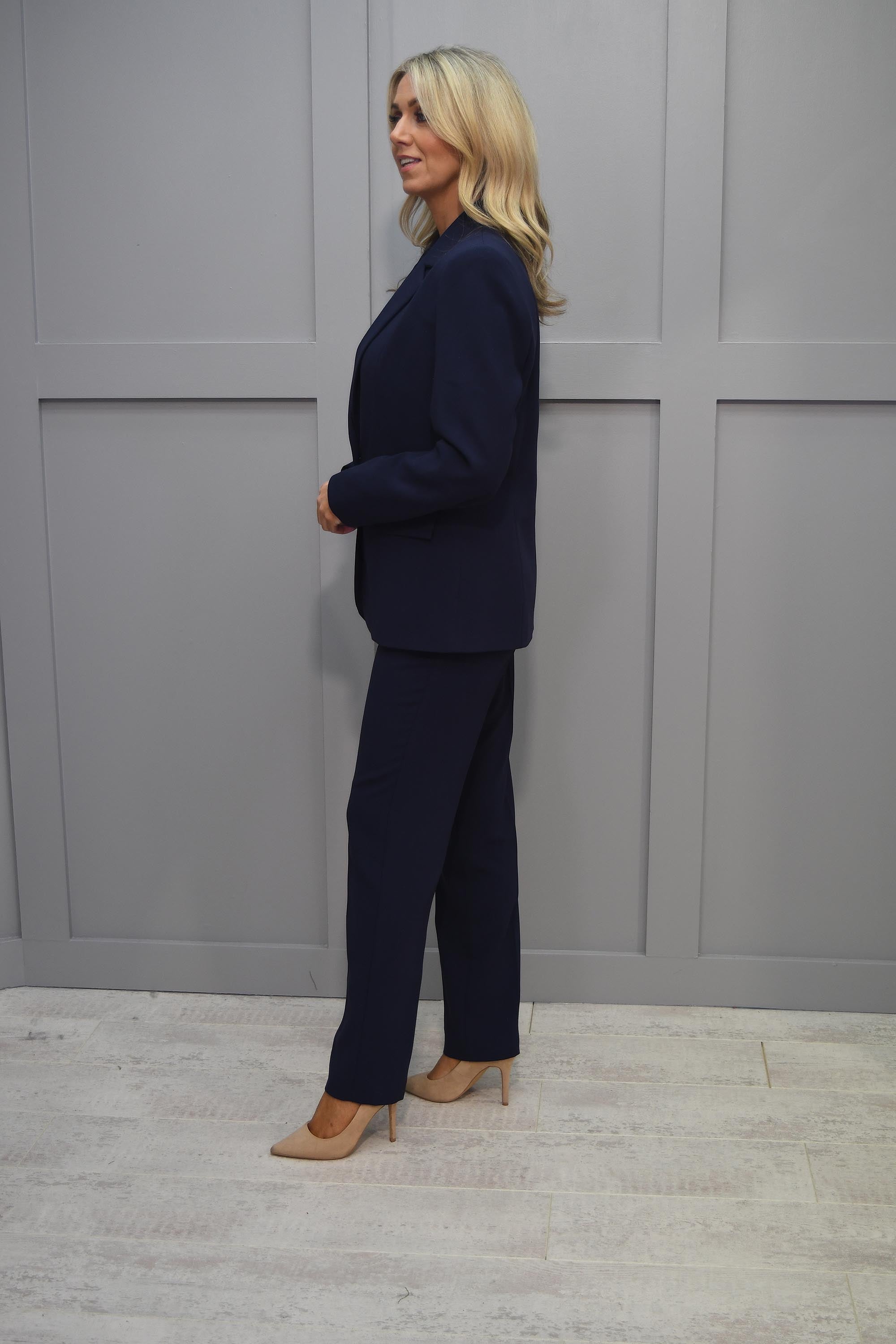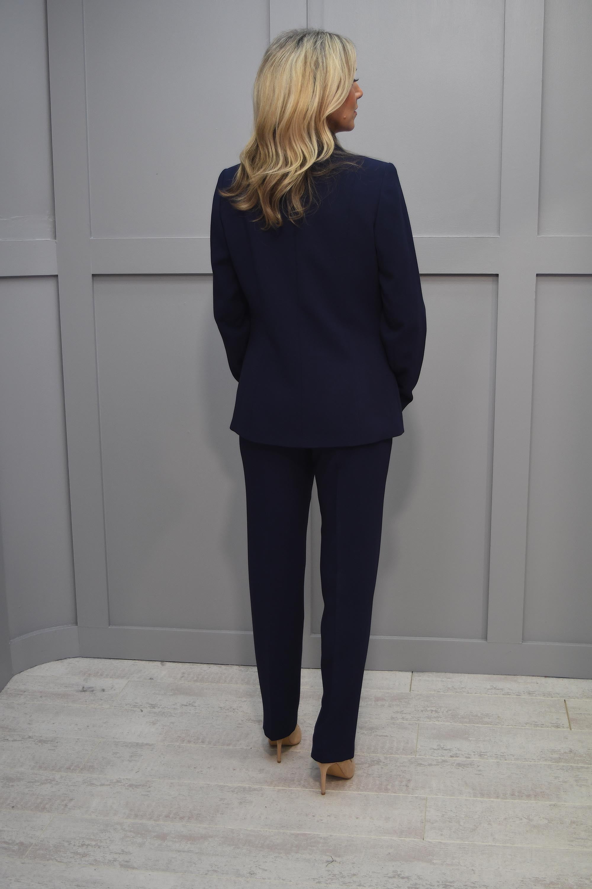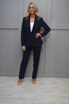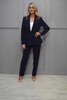 Flattering, powerful and chic, this Navy Blazer from Avalon is the perfect jacket for work. Designed from a deep navy material with a deep neckline, two large black buttons and faux pockets, this blazer exudes confidence. Layer this elegant navy blazer over a white blouse and the matching Navy Penny Trousers for a fabulous ensemble that shows you mean business.