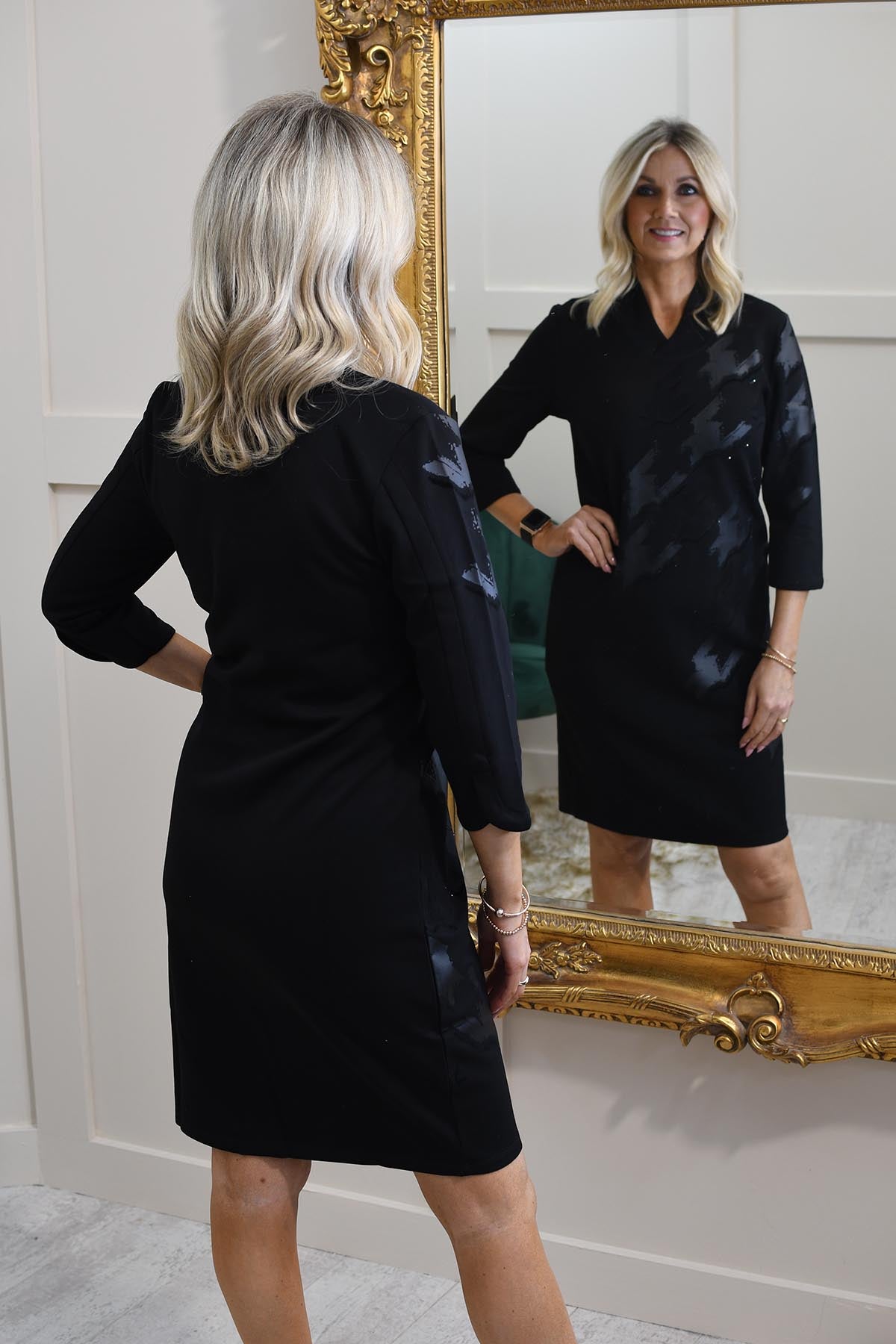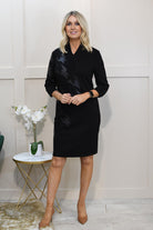 Step into sleek sophistication with the Barbara Lebek Black Dress With Faux Leather, Velvet & Stud Detail, crafted from a comfortable blend of 50% polyester, 45% viscose, and 5% elastane. This statement dress combines luxurious textures—smooth faux leather, rich velvet accents, and edgy stud detailing—for a bold, contemporary look. The soft stretch fabric ensures a flattering fit, while the elegant silhouette makes it perfect for both evening events and stylish dinners. A true standout piece that blends comfort with refined glamour.