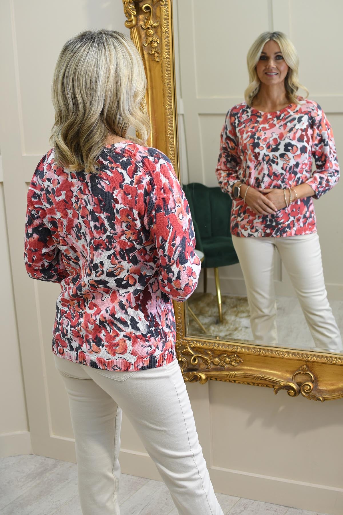 Barbara Lebek Coral, Charcoal & Peach Knit Sweater-75290052
