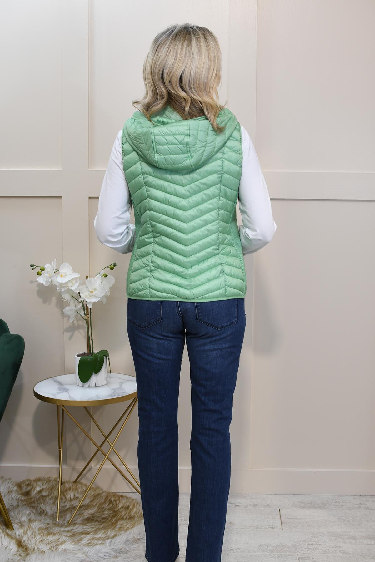 The Barbara Lebek Lime Green Padded Gilet With Hood is a stylish and practical layering piece, perfect for transitional seasons. Crafted with a lightweight yet insulating design, this gilet offers warmth without bulk. The elegant green shade adds a sophisticated touch, while the padded construction ensures comfort. Featuring a zip-front closure, detachable hood, and functional pockets, it blends fashion with functionality. Ideal for casual outings or outdoor adventures, this versatile gilet pairs effortlessly with sweaters or long-sleeve tops for a chic, cozy look. Designed with high-quality materials, it provides durability and timeless appeal for any wardrobe.