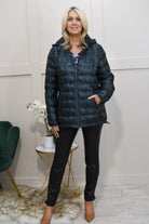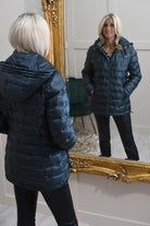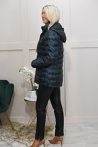 Barbara Lebek Metallic Bottle Green Padded Coat With Hood-10910042