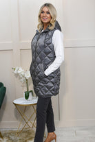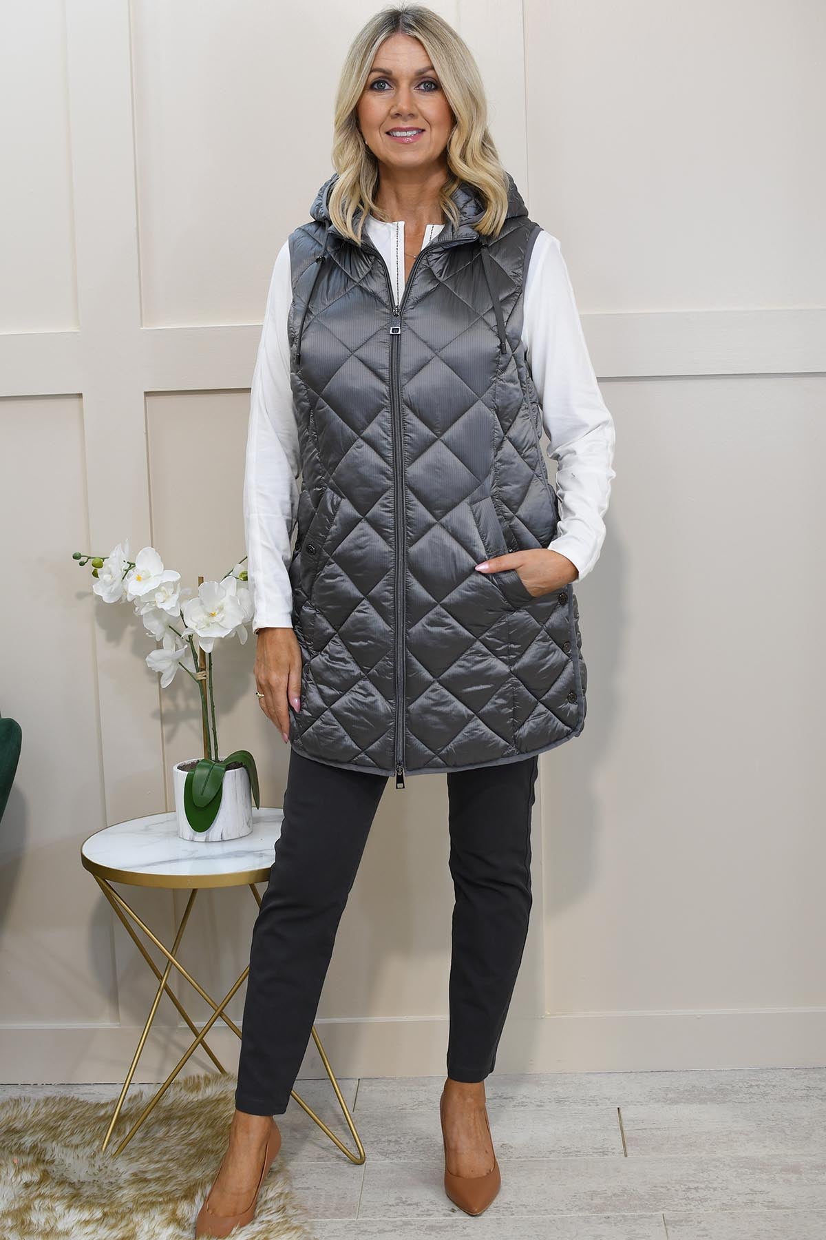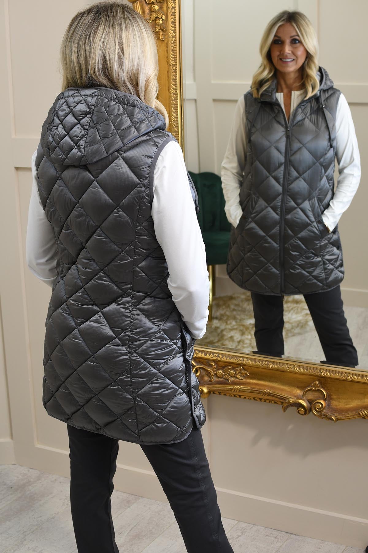 Barbara Lebek Metallic Graphite Padded Gilet With Detachable Hood-31270052