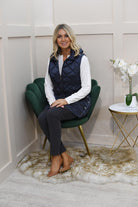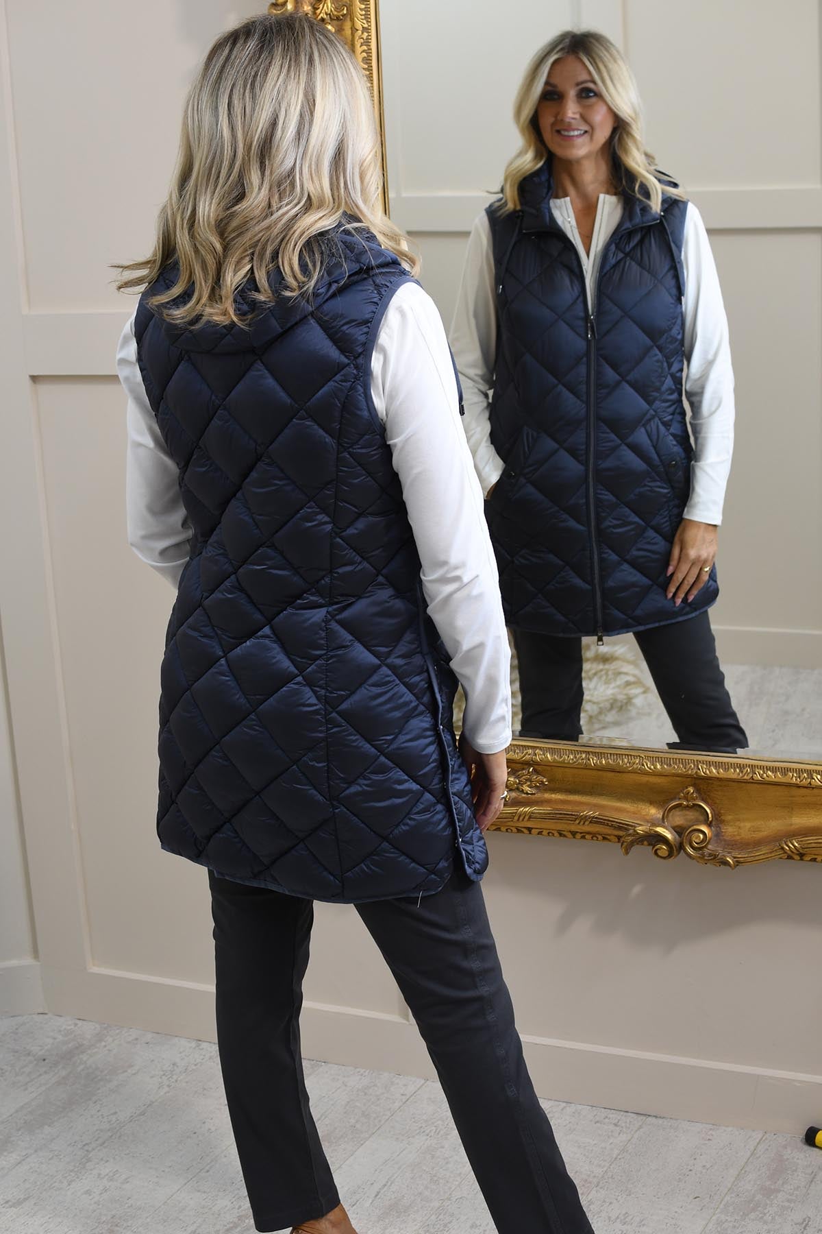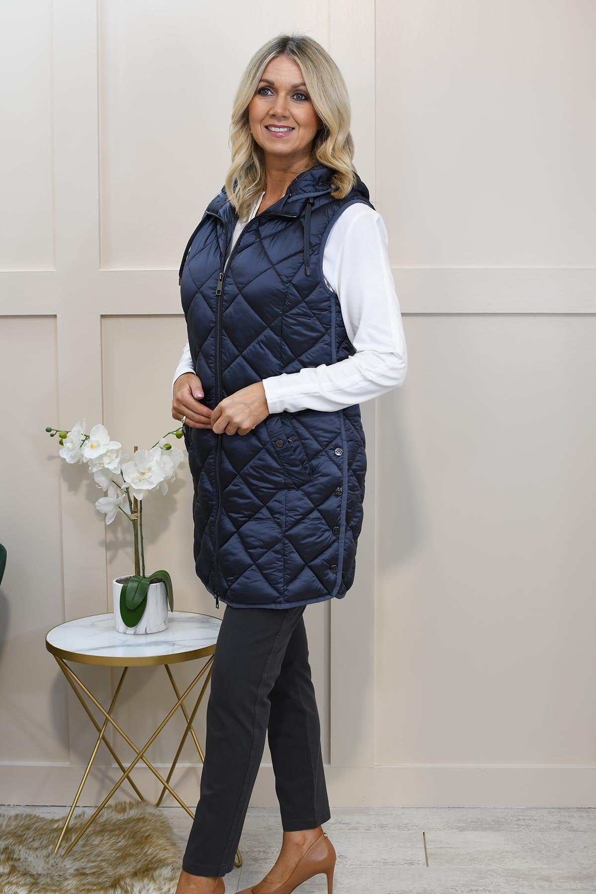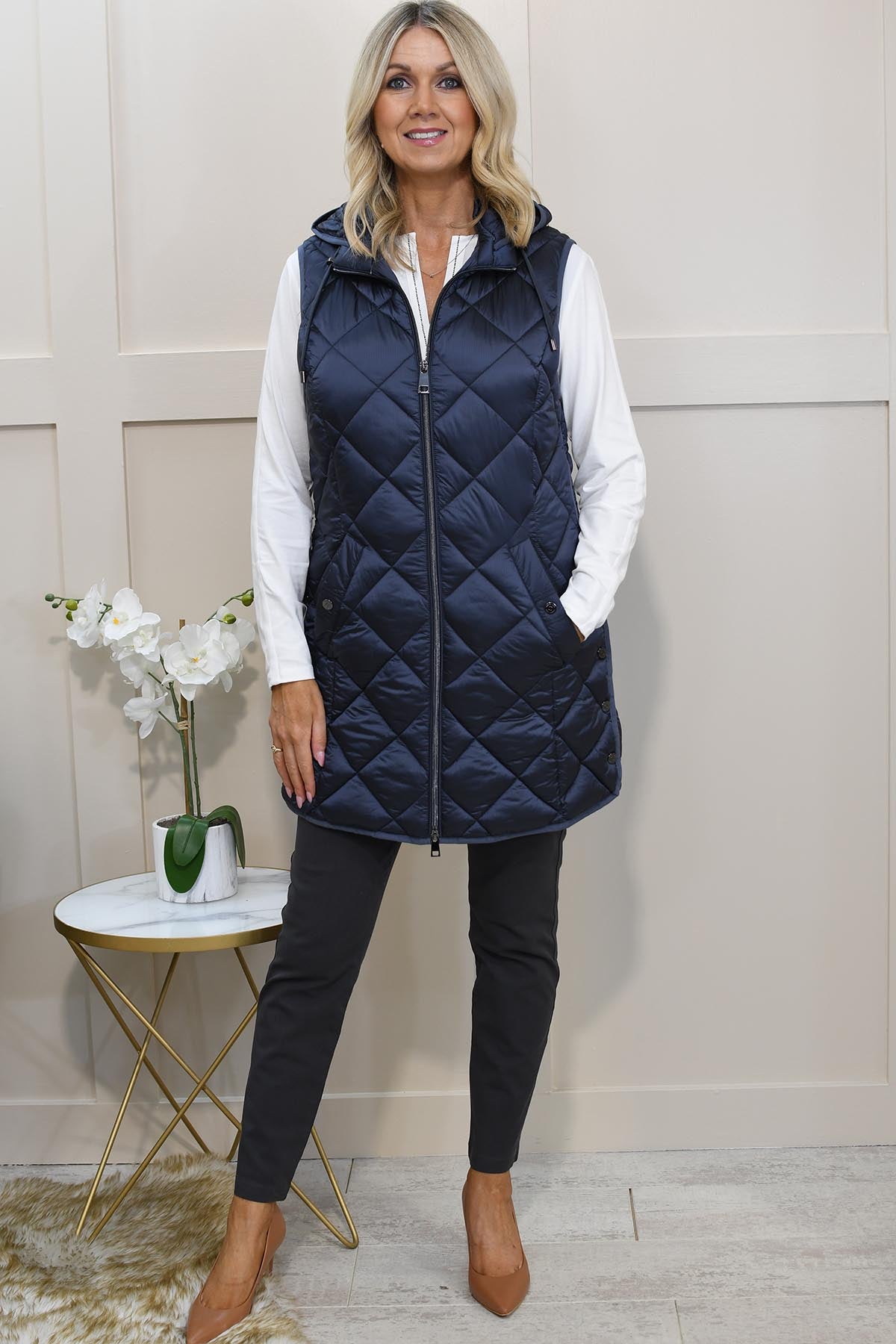 Barbara Lebek Metallic Navy Padded Gilet With Detachable Hood-31270052