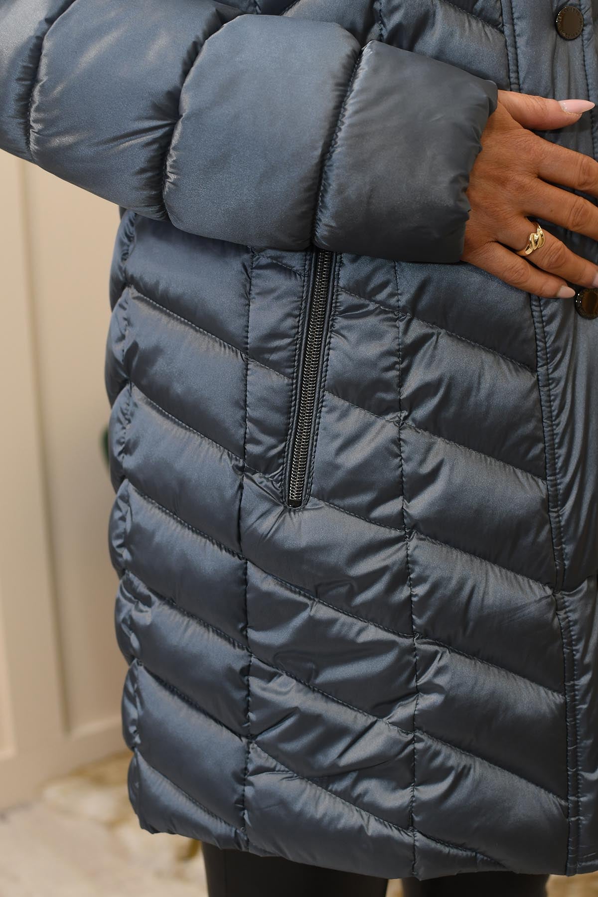 Barbara Lebek Padded Coat With Faux Fur- Dusty Blue 30460052