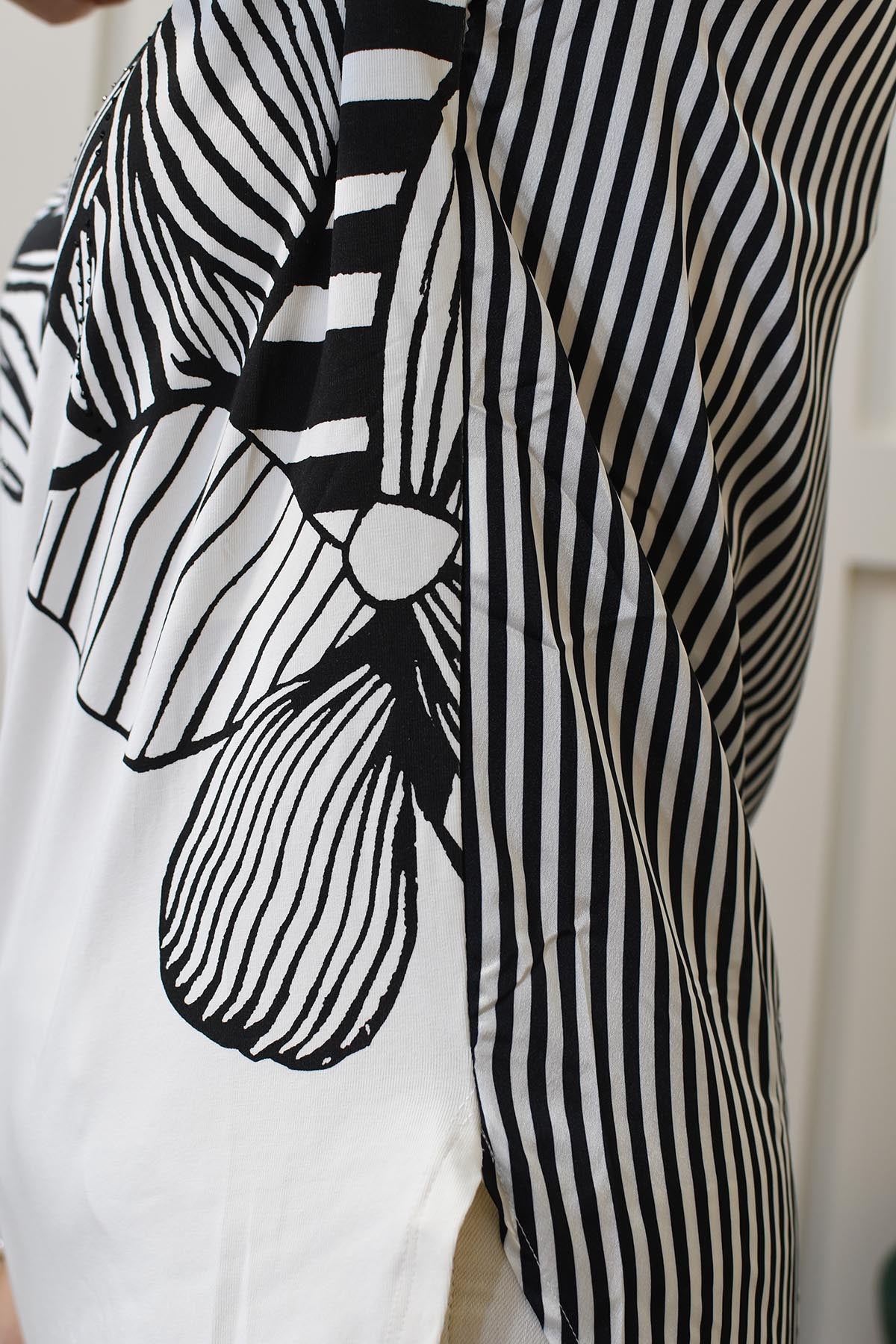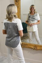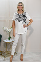 Barbara Lebek Panna Cotta & Black Floral Stripe Top- 75770052