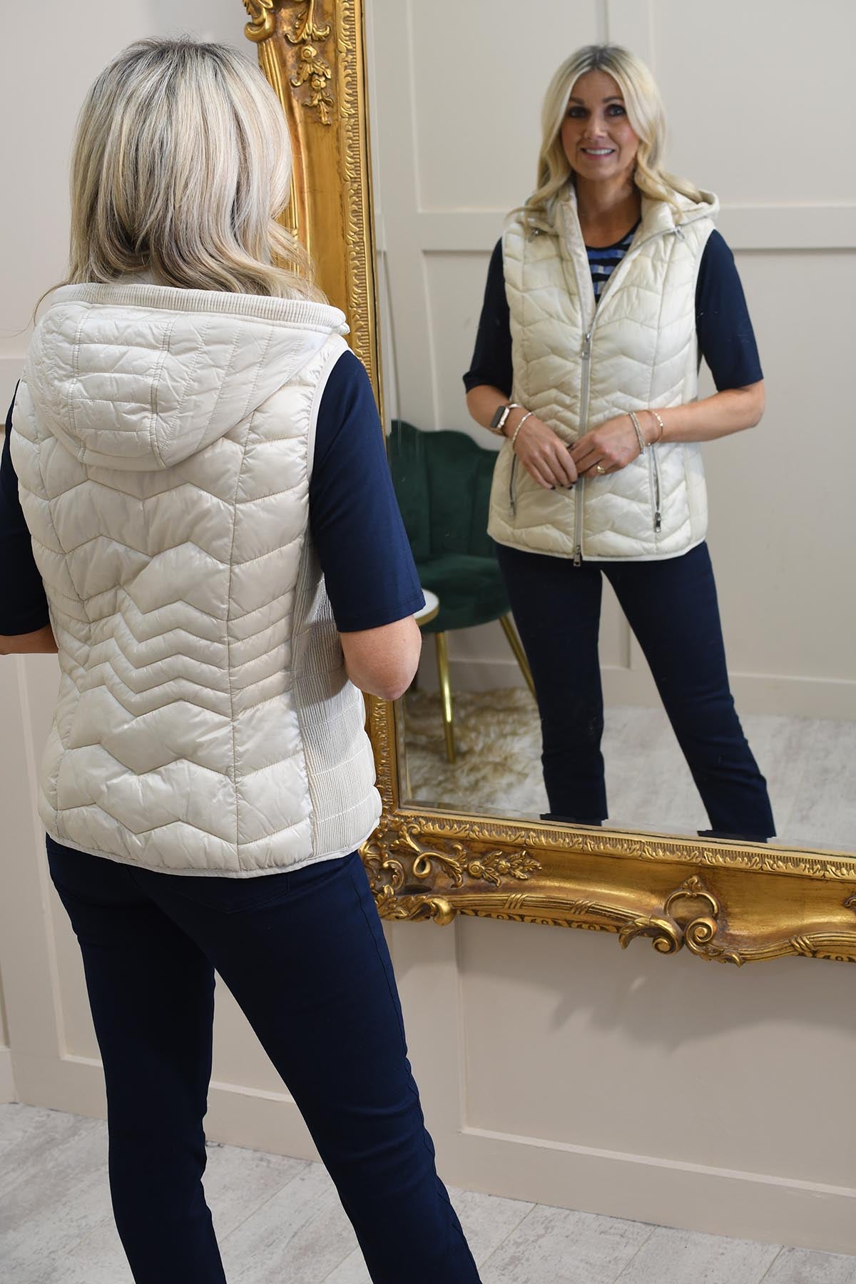 Barbara Lebek Panna Cotta Short Gilet With Hood Description