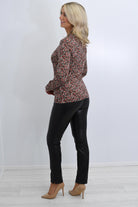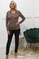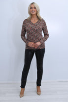 Barbara Lebek Red, Brown & Beige Print Round Neck Top- 15880042