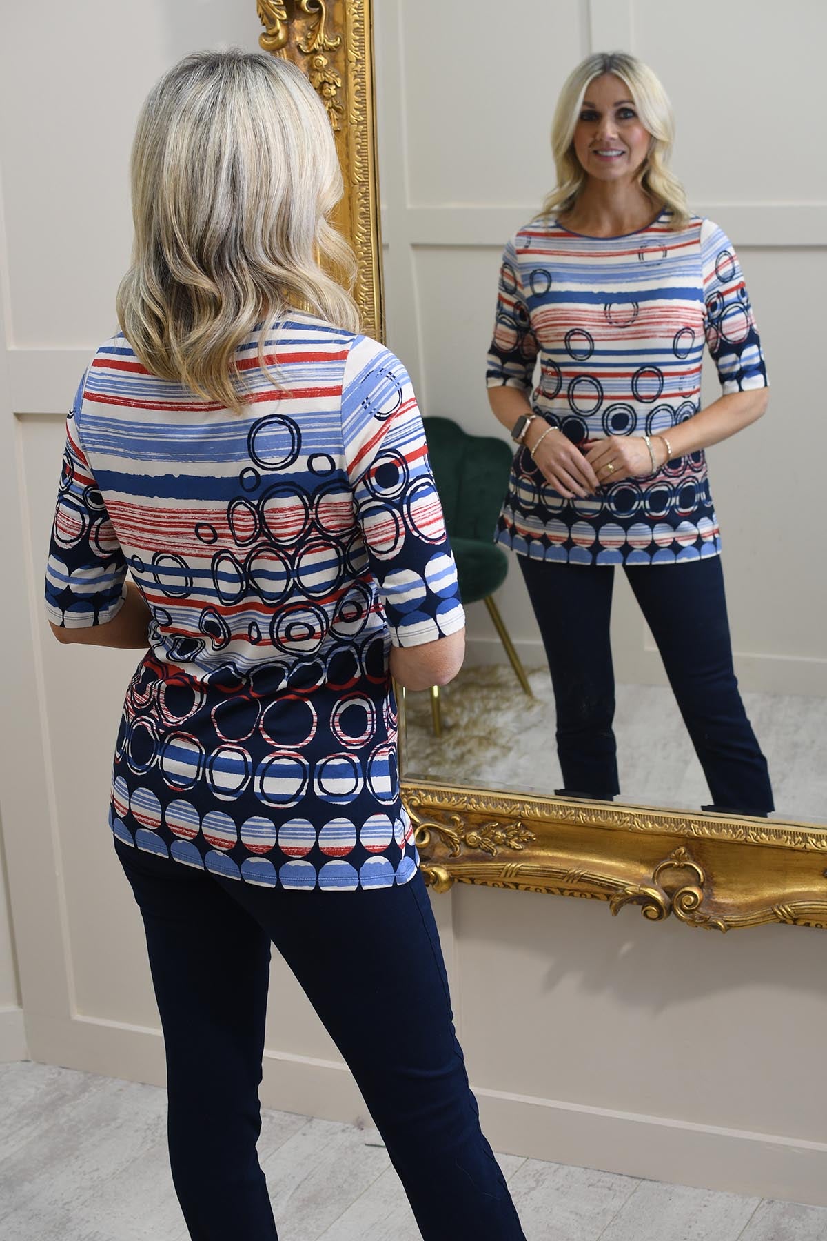 Barbara Lebek Red, Navy & Blue Mixed Print Top Description