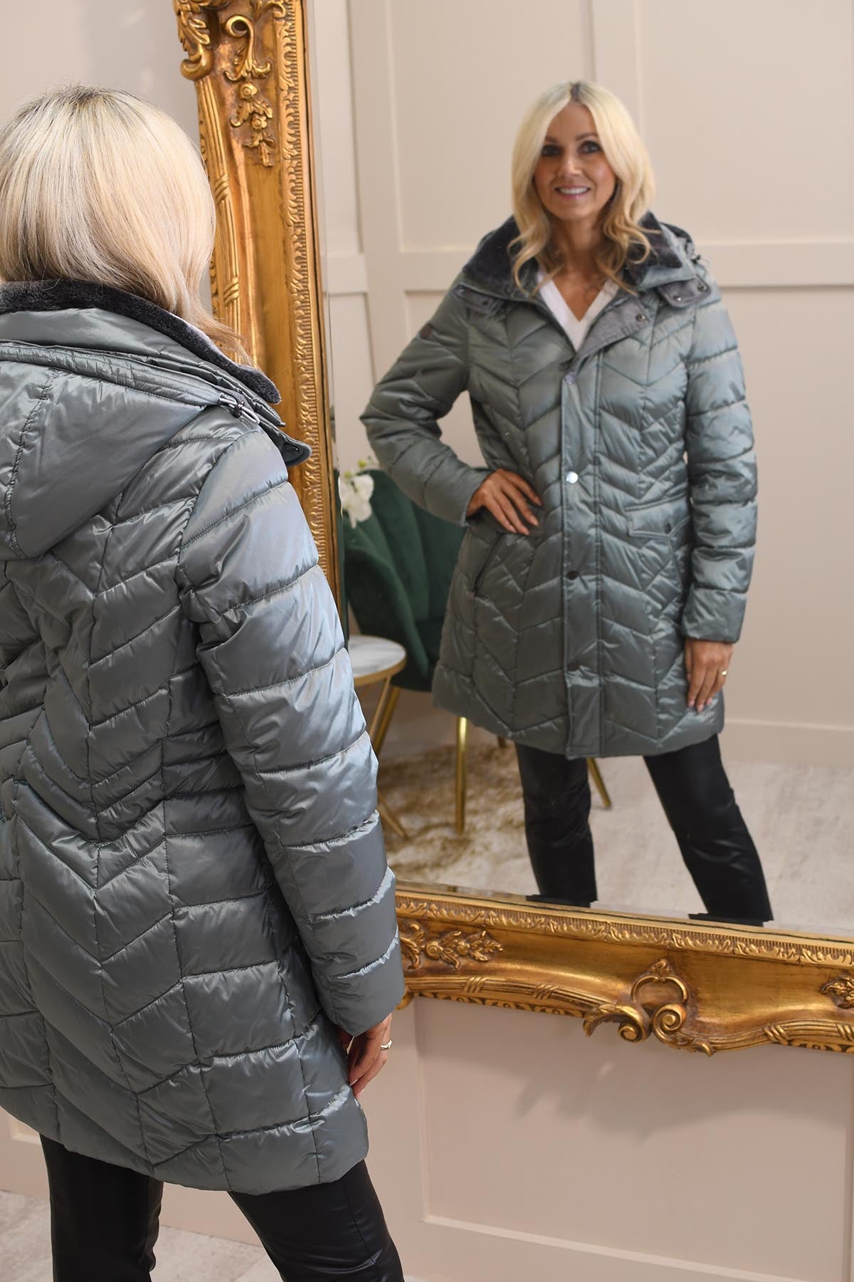 Barbara Lebek Sage Green Padded Coat With Detachable Hood- 10460042