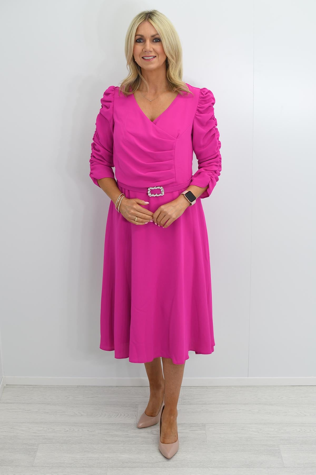 Coco Doll Hot Pink V Neck Dress With Belt Description