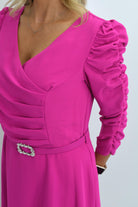 Coco Doll Hot Pink V Neck Dress With Belt- Veder CD102