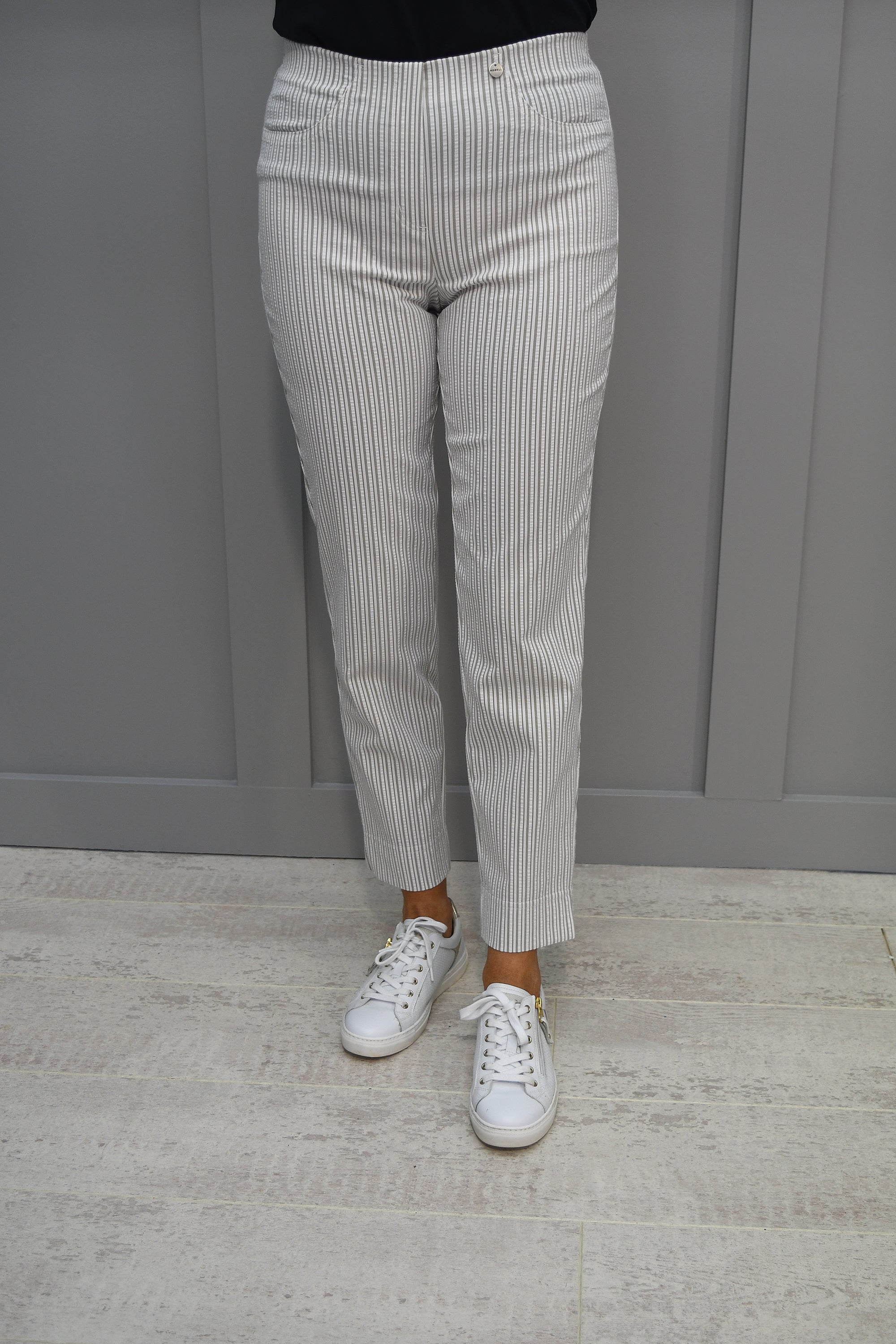 Robell Bella 09 Stripe Trousers - Beige 52642 54370 14